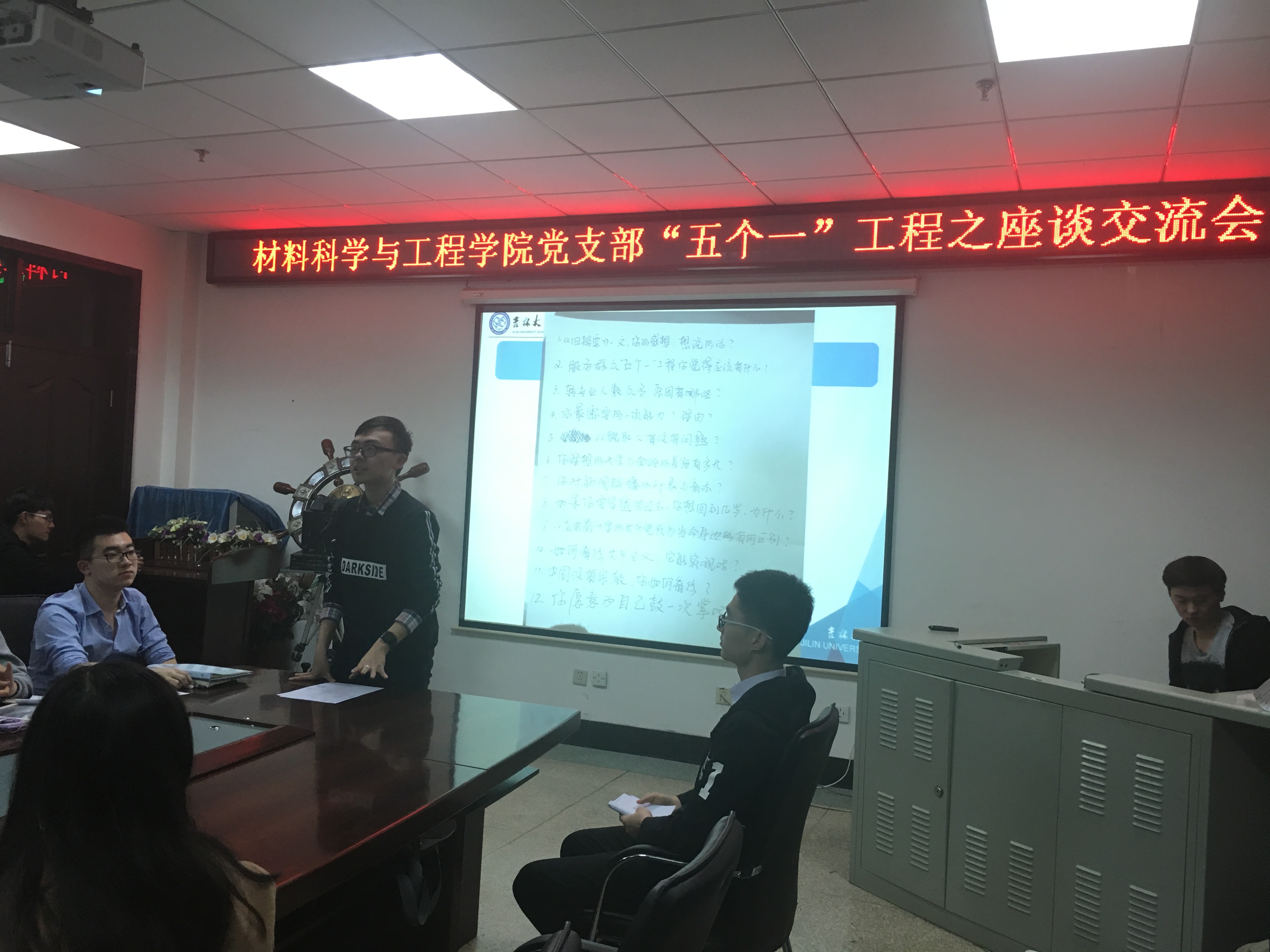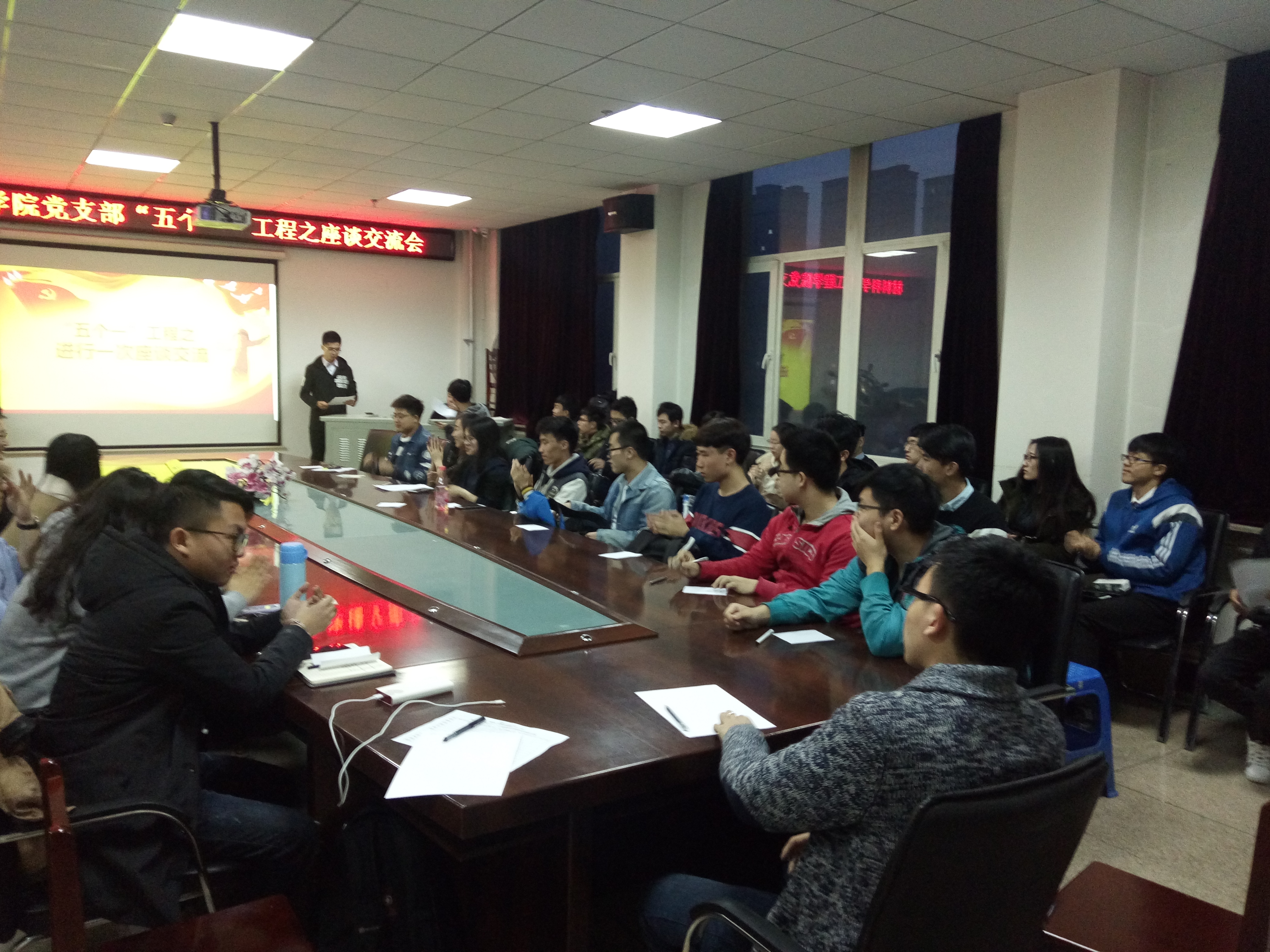 本科生党支部学生党员、入党积极分子素质提升“五个一”工程,号召学院全体本科生学生党员及入党积极分子开展形式多样的社会实践和理论学习活动,并于3月19日晚6时,在逸夫机械材料馆401会议室召开座谈交流会,材料学院2015级入党积极分子、党员及三支部党支部书记、2015级辅导员佟昊天出席了本次座谈交流会。