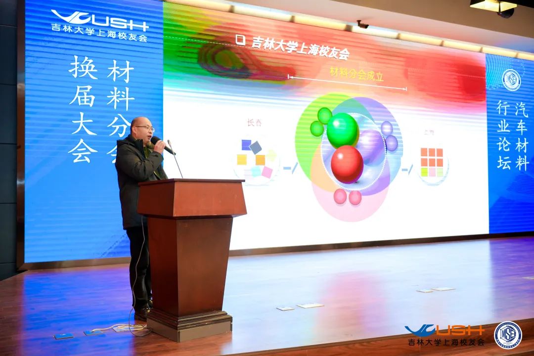 上海校友会常务副会长兼秘书长王洪俊致辞,他代表上海校友会热烈欢迎母校老师、各位来宾和各地校友的到来,并简要介绍了上海校友会的概况及材料分会换届的背景情况,表示今后上海校友会将一如既往地支持材料分会的发展,希望广大校友多多关注材料分会、多多关注上海校友会。