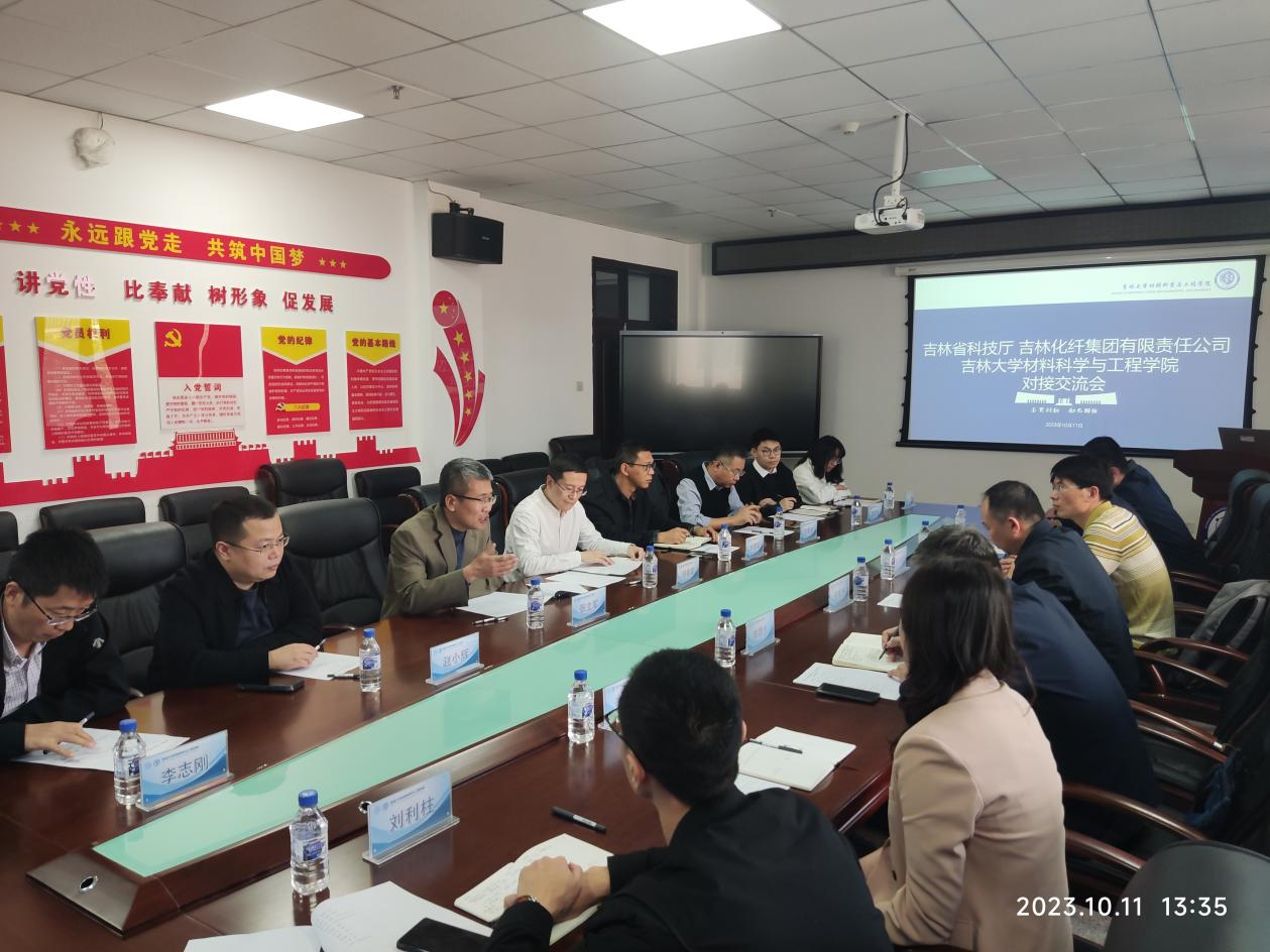 院长张立军教授对省科技厅和吉林化纤集团一行的到来表示了热烈欢迎,他回顾了学院的发展历程以及合校以来的发展变革,同时介绍了2017年“双一流”学科建设以来学院的长足发展,就学院发展态势,学科发展优势,我院与吉林省相关企业在科研合作方面的情况做了交流。