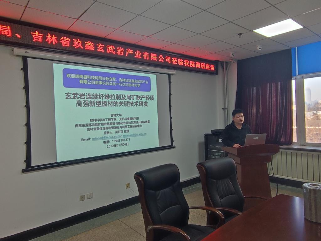 南岭校区机械材料馆410会议室举行。辉南县科技局局长孙立军、副局长张文波、吉林省玖鑫玄武岩产业有限公司董事长郭久民,日本av