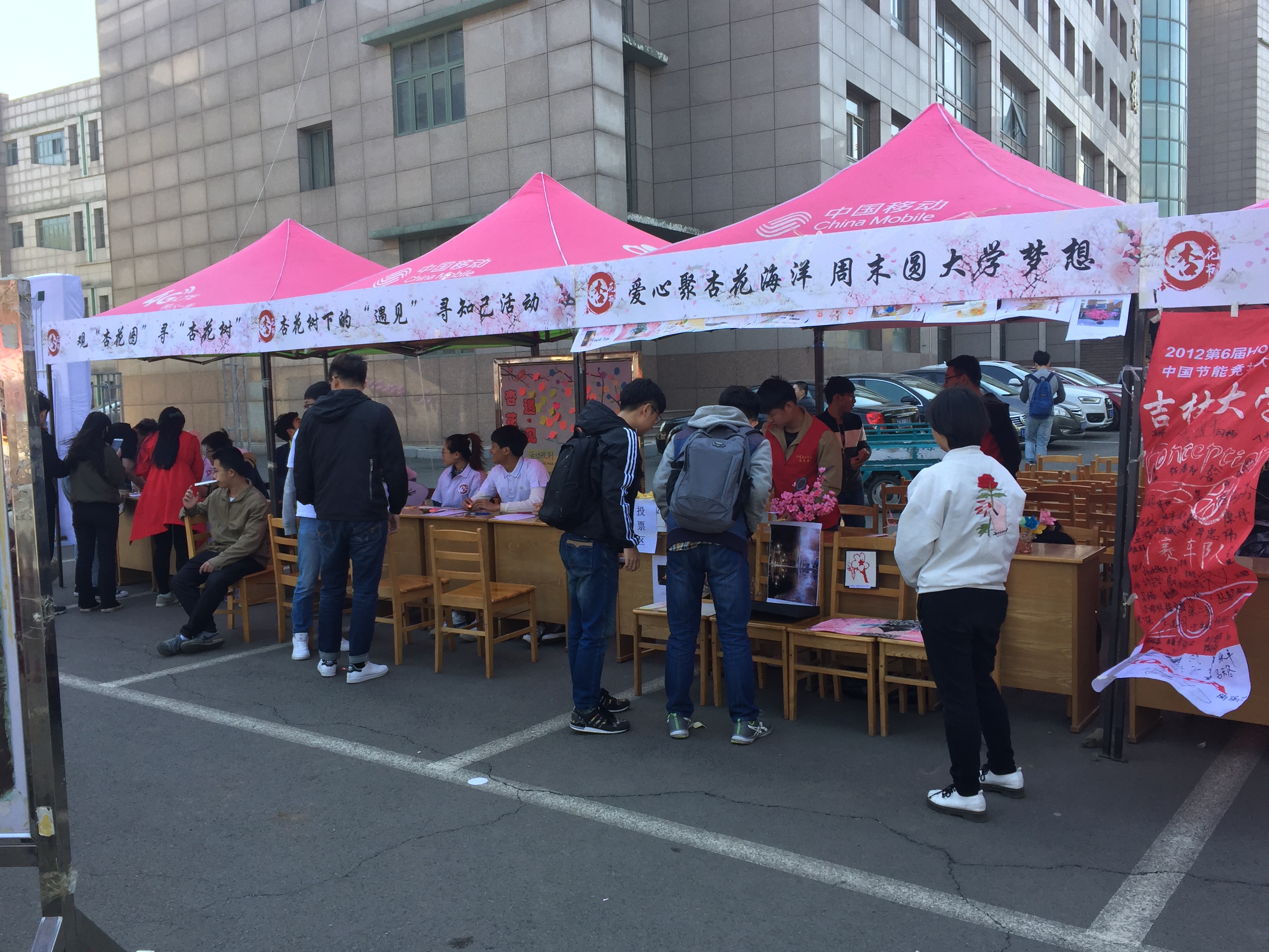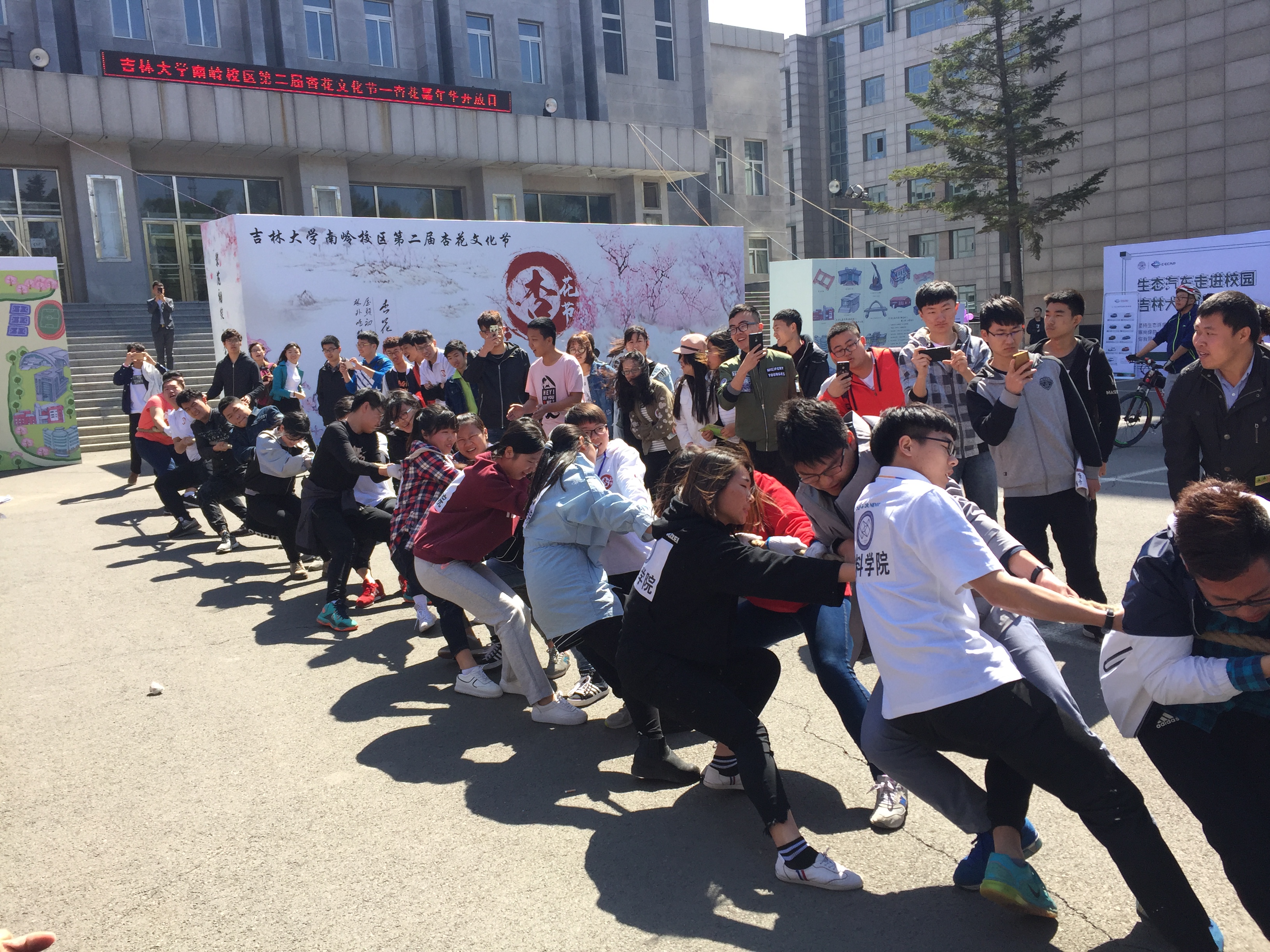活动于上午8时正式开始,各学院依次架好帐篷,有条不紊地开始活动。拔河大赛、杏花节嘉年华及生态汽车知识竞赛和路演等活动依次进行;围棋解局、长笛义培、杏花知识竞赛等活动也吸引了众多关注;杏花笺明信片、杏花写生、杏花节书法、杏花果味糖果得到了同学们广泛好评;飞花诗吟、疏影飞镖等游戏活动让同学们排起长队;杏花树下的“遇见”寻知己、爱心聚杏花海洋、观“杏花图”寻“杏花树”活动更是都受到了大量同学的喜爱。最后,杏花节活动于下午13时圆满结束。