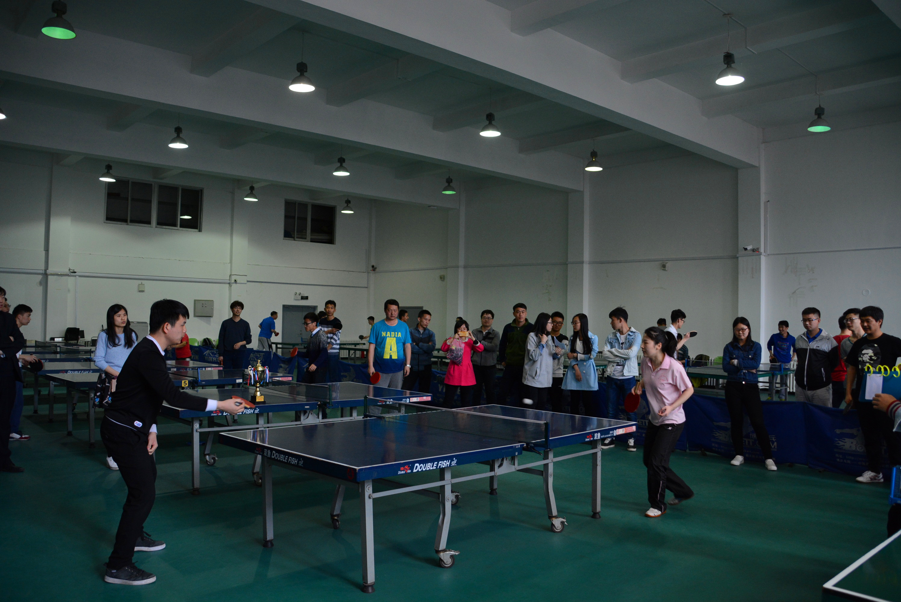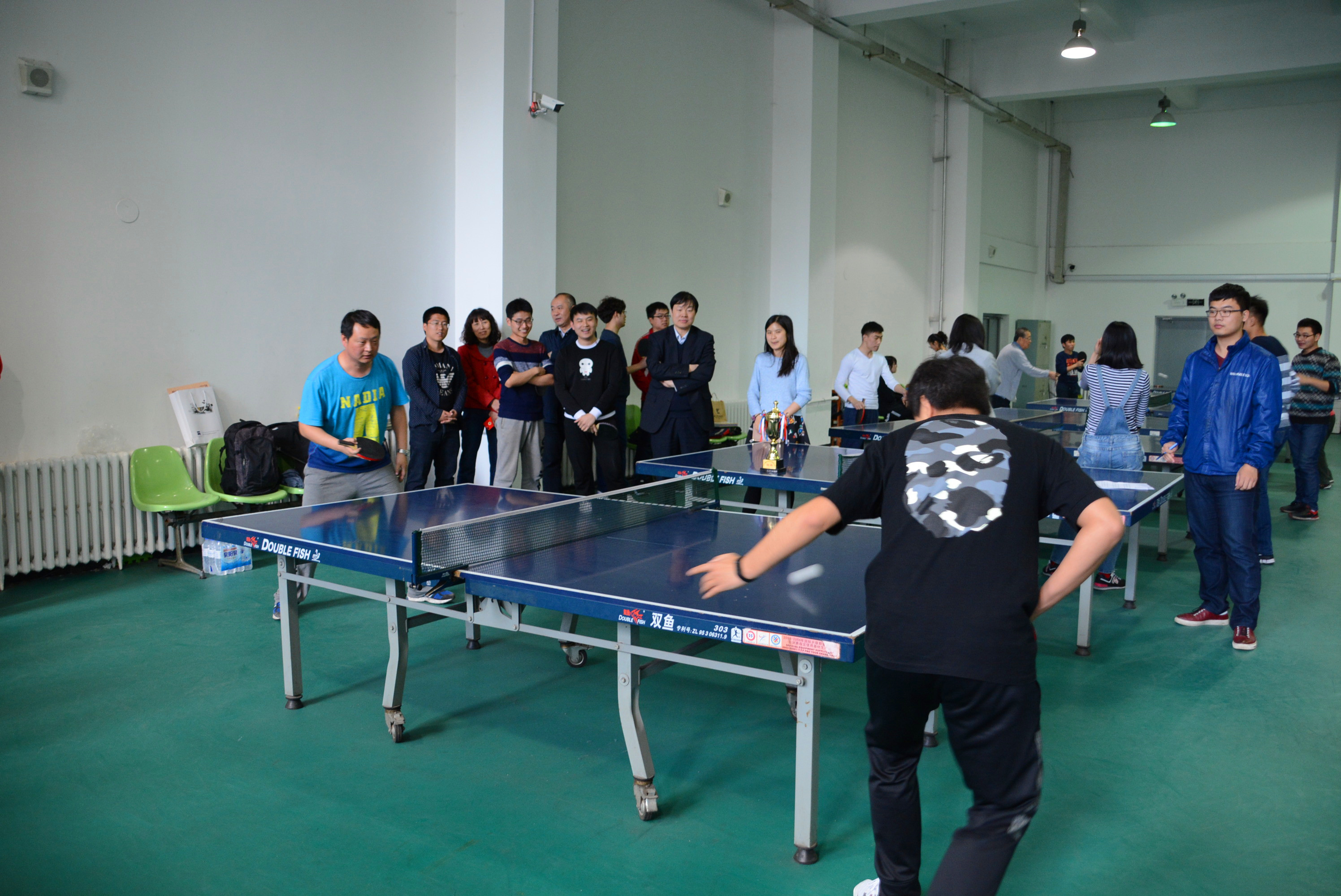 本次比赛有铸造组,连建设组+高分子,曹占义组+锻压,无机非组,辊锻组,以及焊接组,共六支队伍,二十多名选手报名参赛。比赛分为小组赛、半决赛和决赛,以课题组为单位,有两个单打一个双打三个项目,采取三局两胜制。选手们都以饱满的热情投入到了此次比赛中,每个选手都有自己的打球特点和方式,或是突然的起板、变化的旋转强度,打对手一个措手不及;或是淡定自若、掌握手腕用力,打出高稳定性高准确性的一发球;亦或是信心满满、蓄势待发,通过板形、动作轨迹判断球的方向、落点稳操胜券。还有各个组里的其他同学,也满怀热情的前来观战,为自己的队员分析战术,加油助威。