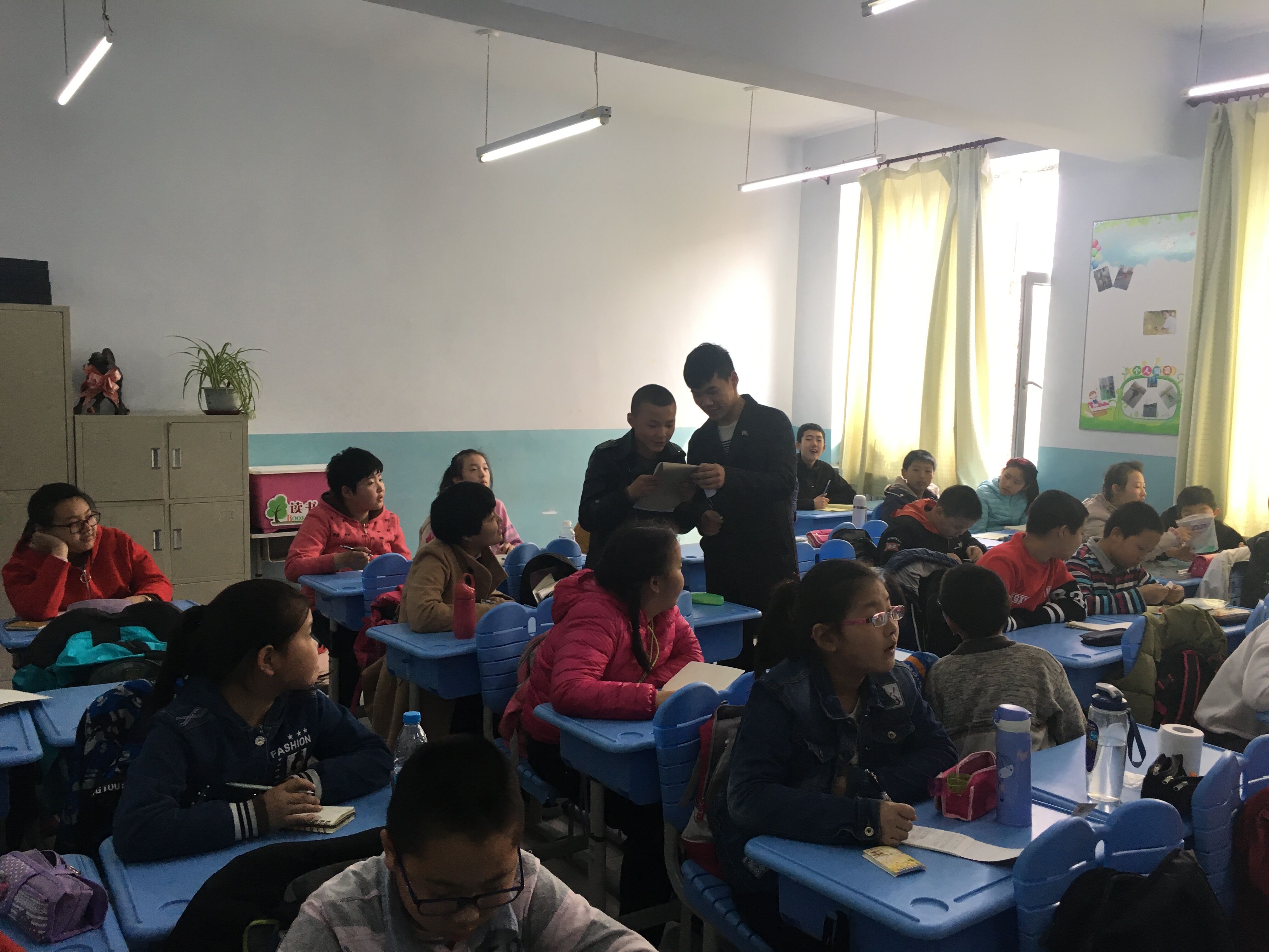 中午12时40分,支教处成员和爱心教师抵达东岭小学,经教务处老师安排后,他们分别到五年级一班和六年级一班进行授课。