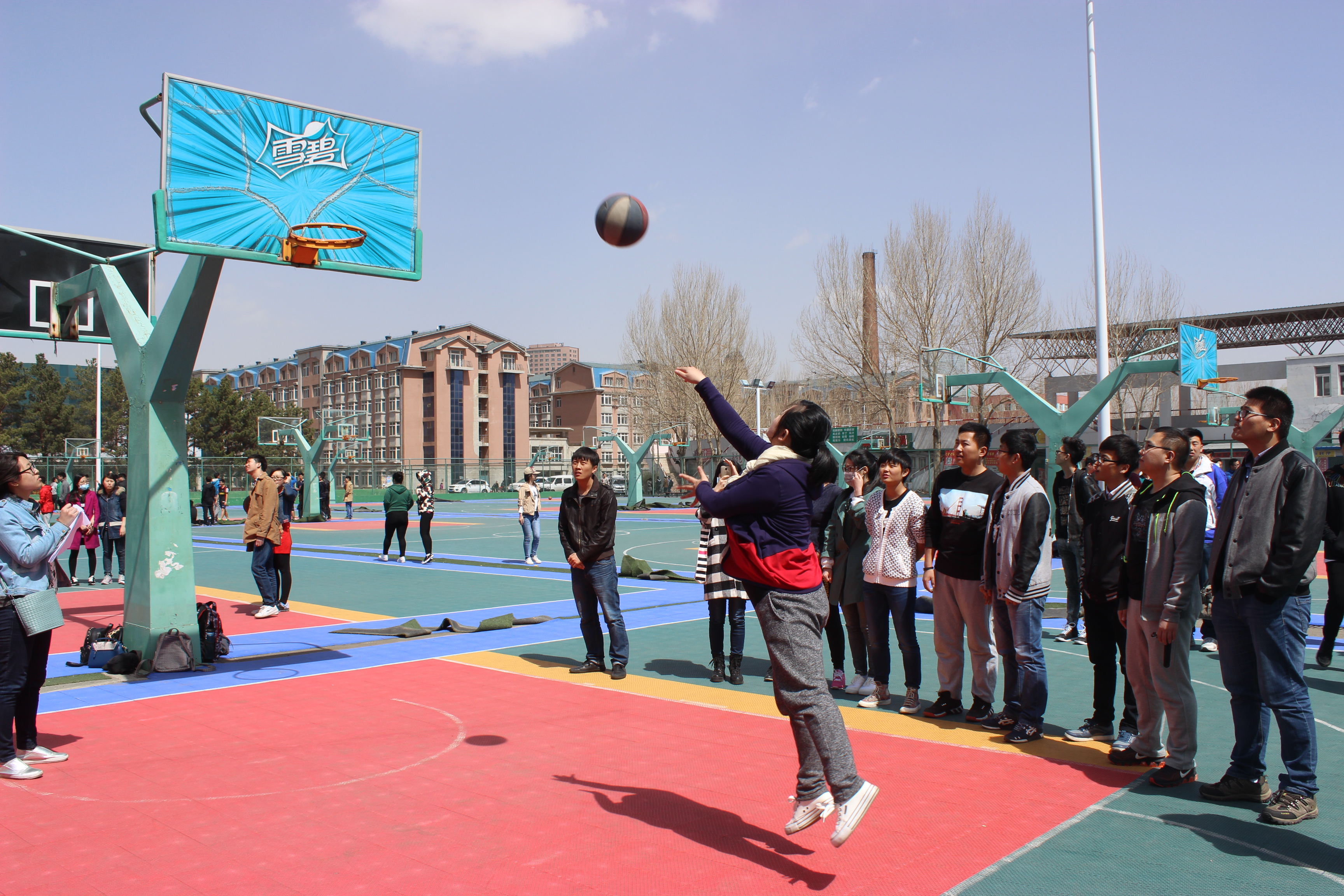 本次篮球比赛旨在丰富研究生的课余生活,积极响应学校“阳光体育”运动的号召,营造一个积极、健康、朝气蓬勃的校园运动氛围。在材料学院研究生学团委各位成员的共同协作之下,篮球赛于4月15日在南岭校区篮球场顺利拉开帷幕。连续的雨雪天气并没有阻挡同学们参加比赛的热情,此次篮球赛共有7支队伍报名参加,比赛开始分A、B组小循环,每小组前两名出线,接着进行淘汰赛,最终进行决赛。经过抽签曹占义老师+锻压组、蒋青老师组、铸造组以及辊锻所组为A组,连建设老师组、无机非金属材料+高分子材料组、焊接组组成B组。比赛前队员们个个激情满怀,积极准备。赛场上,各队队员你争我夺,一轮轮地抢球、控球、传球、投球。每个动作针锋相对,潇洒帅气。比赛进行地如火如荼,队员们情绪高涨,观众亦激情四射,啦啦队也喊得气势磅礴。课题组男子篮球对抗赛的同时还进行了三分大赛、罚篮比赛及女子趣味投篮大赛。