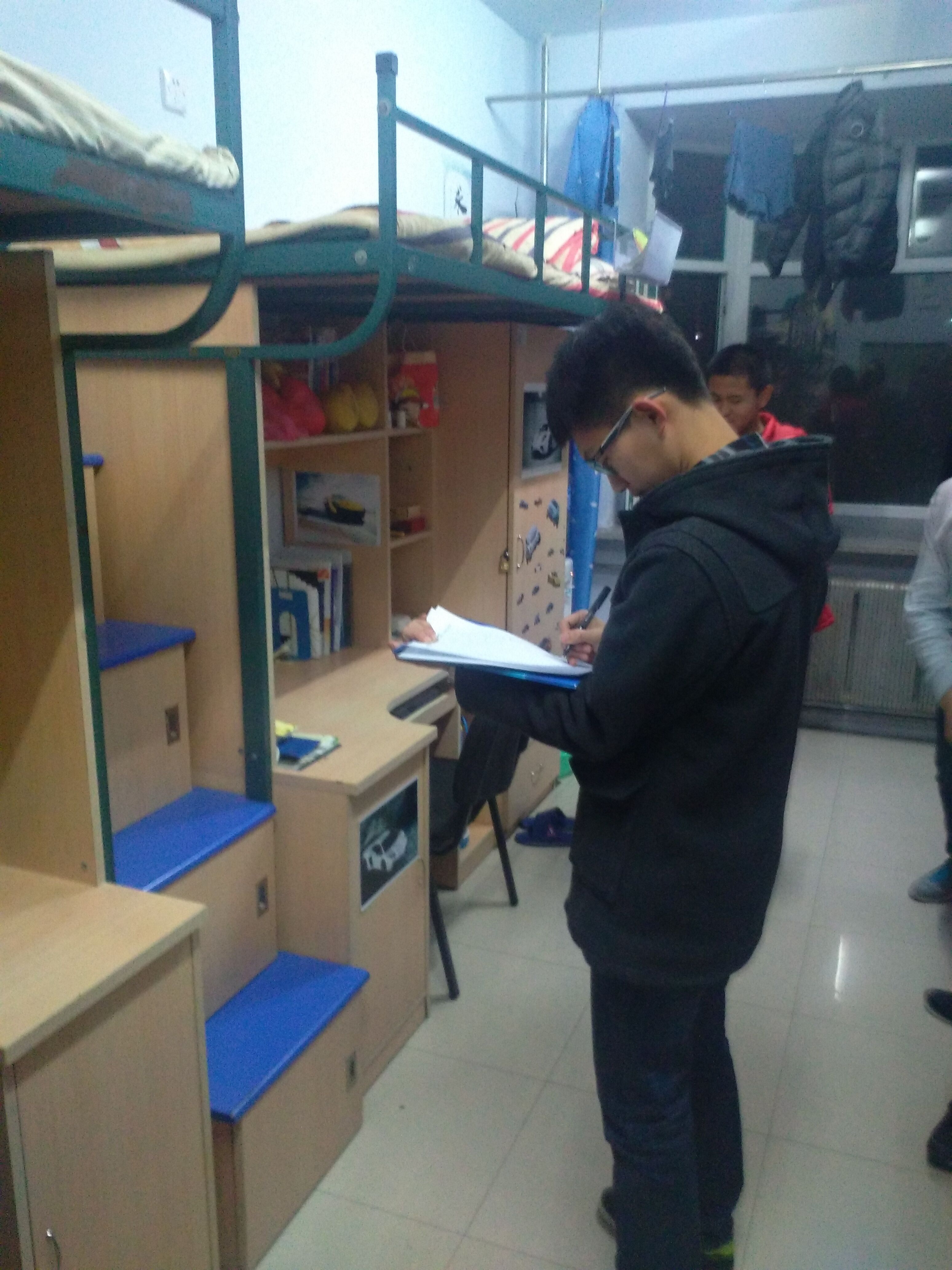 本次检查中,15级学生寝室整体上达到了整洁、温馨与友爱的标准,没有发现乱接电源插头的现象,也没有发现使用违禁物品。大部分同学在寝室进行自习,寝室内学习氛围浓厚。针对二公寓部分寝室存在物品摆放不整齐等情况,提出了整改要求。检查同时,对全体寝室提出了通风、清扫与消毒的要求,保持寝室的干净卫生,提醒了加强寝室安全防范事宜。