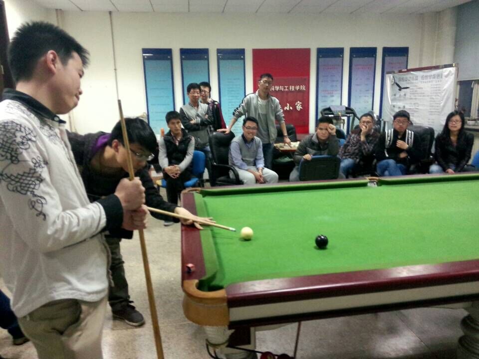 在学团委各位成员的共同协作之下,桌球赛顺利拉开帷幕。竞赛规则遵循国标普尔八球(黑八)个人赛的赛制,按照抽签的结果决定的分组结果正式开始。比赛初赛阶段采用小组赛,复赛采用淘汰赛,决赛采用循环积分赛,共有近30名同学参加了这次竞争激烈的角逐。比赛开始后,选手们一张一弛彰显绅士风范,一动一静尽显王者风采,同时,精彩的球技也表现的淋漓尽致。各位选手表现出色,华丽的球姿,专注的表情,恰好的力道,精确的走位,严密的防守无不体现着选手们专业的水平。随着比赛的进行,选手们华丽的球技令在场观众不时发出阵阵叫好声。经过多轮的淘汰和激烈的角逐,丁家伟同学以精湛的球技击败了蝉联两届的冠军,这让同学们由可望不可及变得踌躇满志,更是对下一届的比赛跃跃欲试,本次比赛也在圆满中落下帷幕。