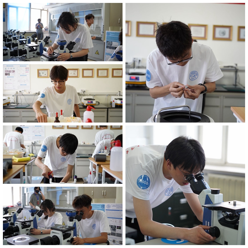 本次大赛持续两天。比赛现场,伴随着打磨的声音,参赛选手们聚精会神地进行磨制、抛光、浸蚀、显微镜观察等工序。他们需对每一个指定样品的指定端面完成磨制、抛光、浸蚀、显微镜观察等工序,以使其特有的显微组织在光学显微镜下清晰地显示出来,最终制备出供评委评分的样品。紧张的赛程考验着参赛选手的实践能力和对材料显微组织结构的掌握程度。