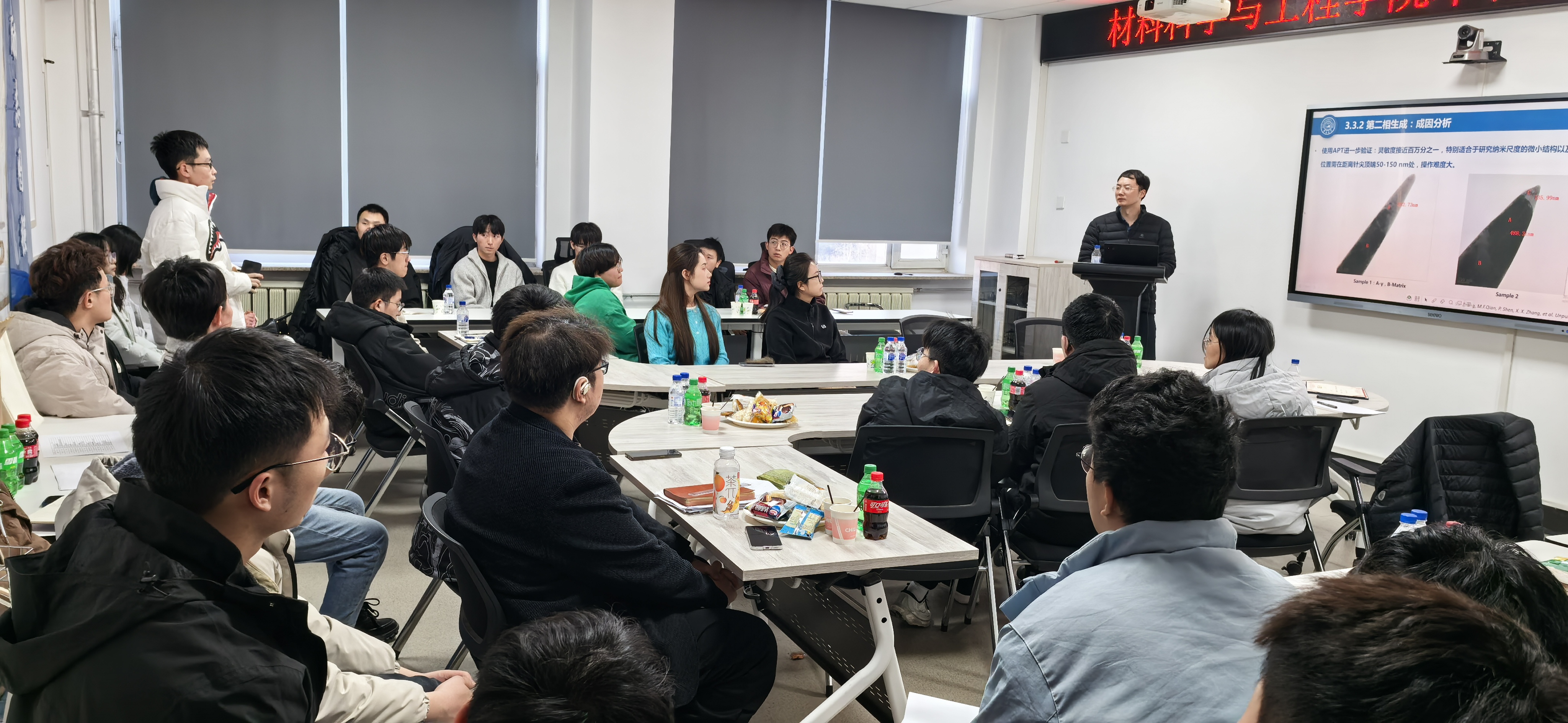 前卫南区唐敖庆楼D429举办。本期学术沙龙南岭会场邀请了2022级材料加工工程博士钟诗江进行学术分享,主持人为沈平老师;南区会场邀请了2022级材料与化工专业硕士赵禹曈进行学术分享,主持人为于陕升老师。