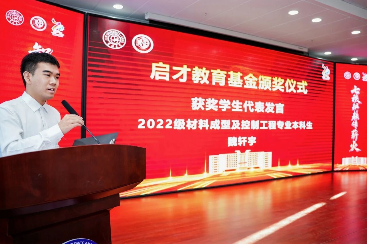 获奖学生2022级本科生魏轩宇同学代表发言,表达了对学院和校友们的衷心感谢。