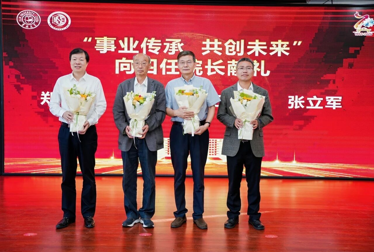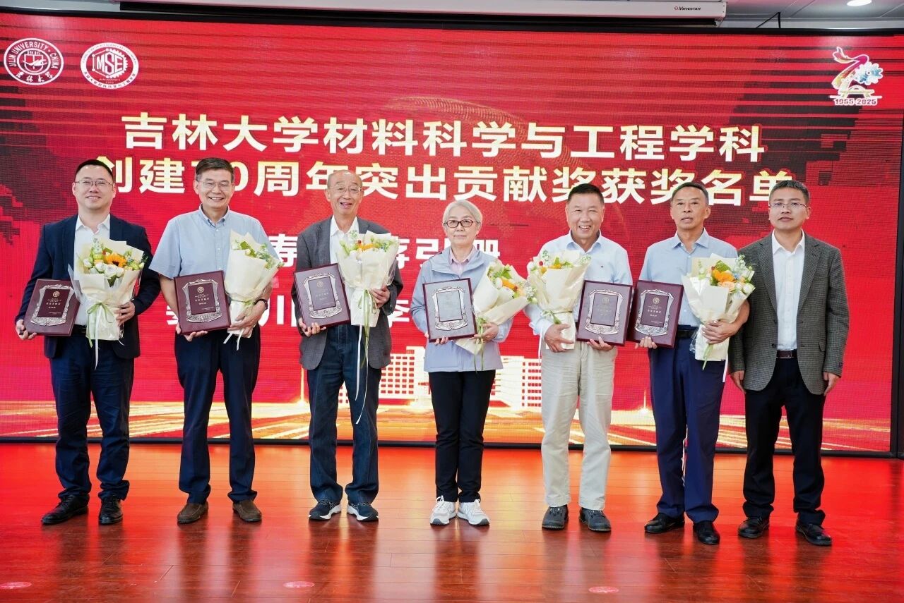 张立军代表学院向为材料科学与工程学科发展作出卓越贡献的教师代表郑伟涛、蒋引珊、蒋青、姜启川、李明哲、孙大千颁发学科创建70周年突出贡献奖。