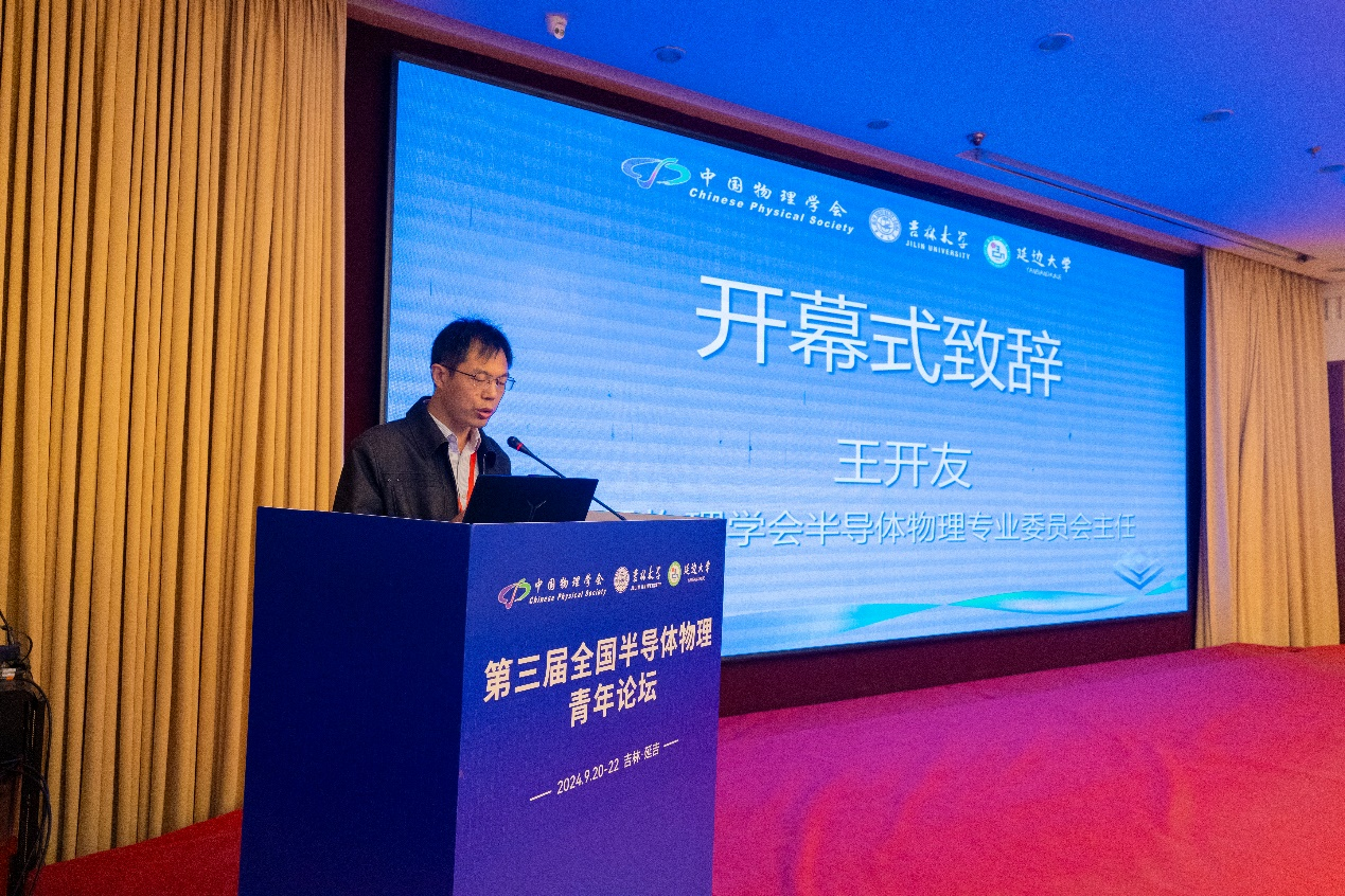 王开友研究员代表中国物理学会半导体物理专业委员会,感谢国家自然科学基金委员会和日本av 的支持,并强调青年学者在推动半导体物理发展中的重要性。他在致辞中期望论坛能够突出特色,促进青年学者之间的交流合作,希望大家在会议中收获灵感和友谊。
