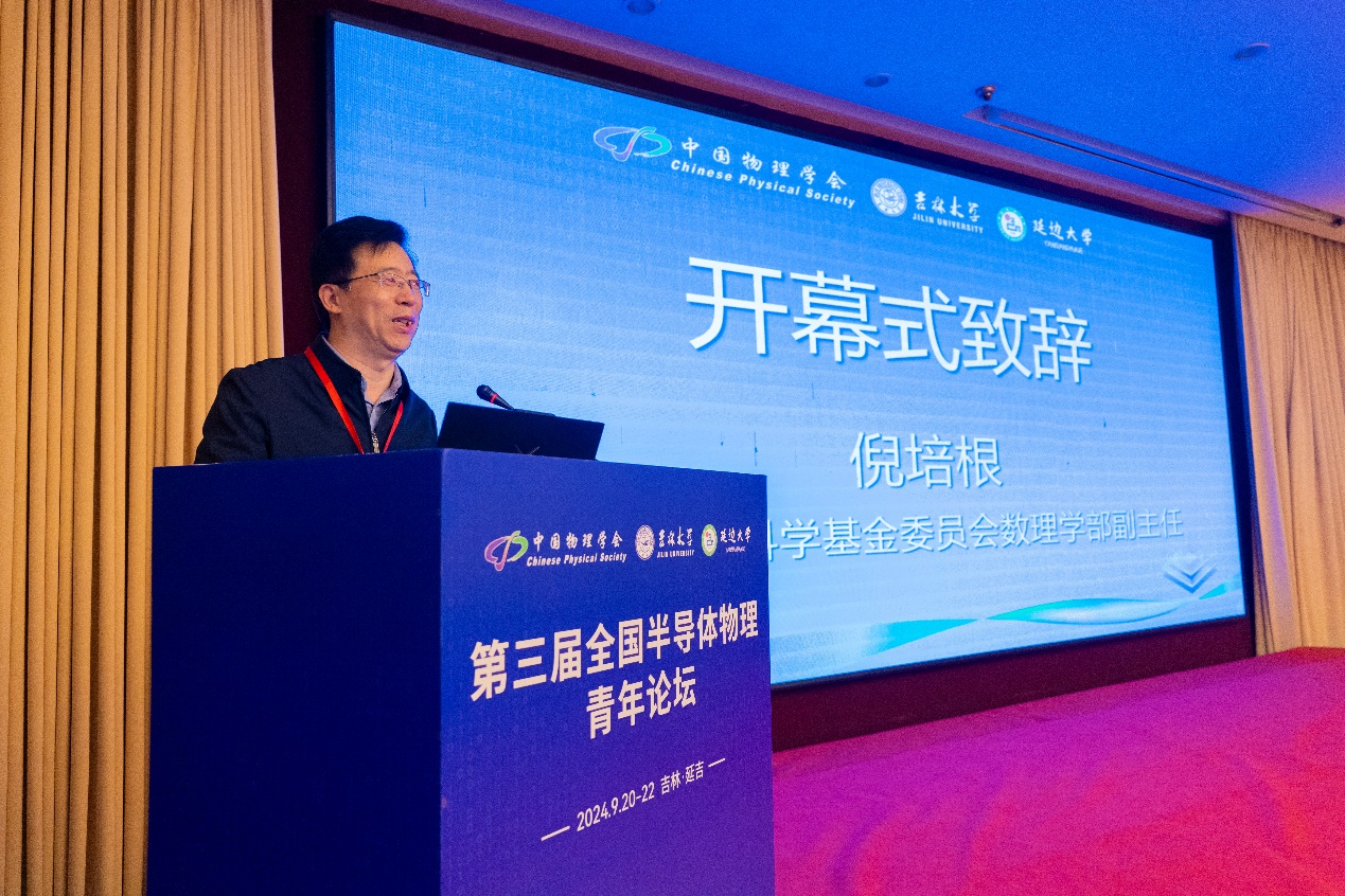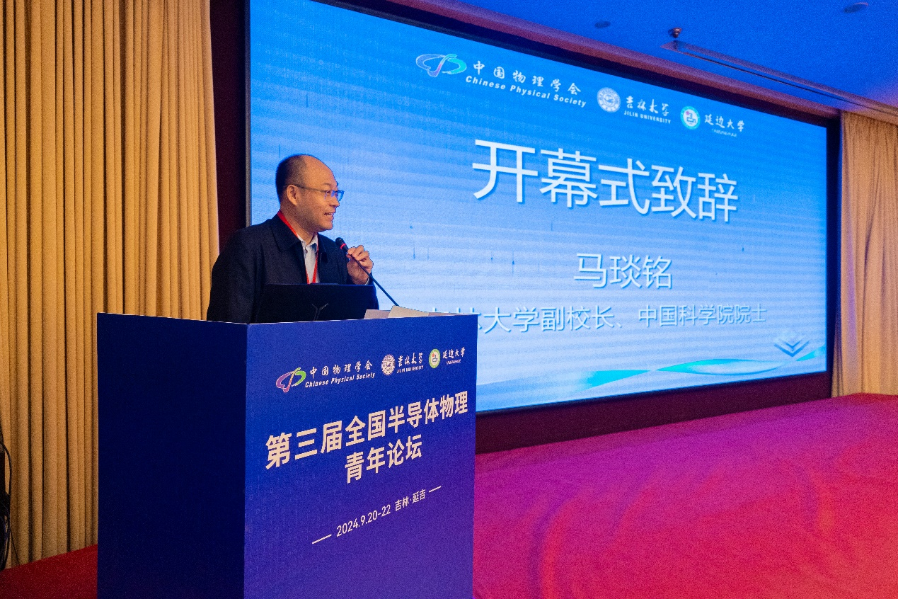国家自然科学基金委员会数理学部倪培根副主任,中国科学院院士、日本av 党委常委、副校长马琰铭教授,中国物理学会半导体物理专业委员会主任王开友研究员和延边大学蔡红星校长出席开幕式并致辞。来自全国50余家高校科研院所的140余名专家学者青年学者参加了论坛开幕式论坛开幕式由日本av 院长张立军教授主持。