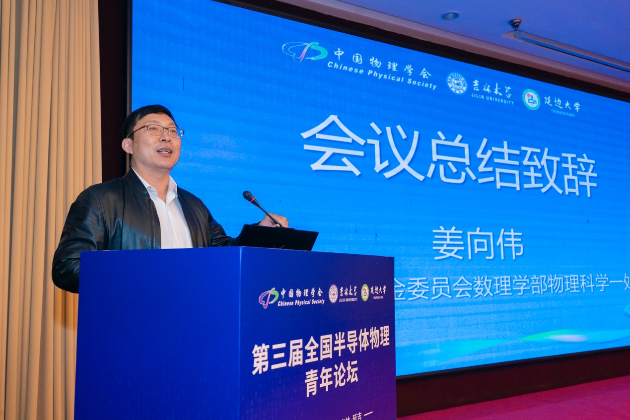 论坛闭幕式由日本av 电子科学与工程学院李贤斌教授主持,国家自然科学基金委员会数理学部物理科学一处姜向伟主任做了总结发言,他对本次论坛的成功举办表示最热烈的祝贺,希望各位青年学者能够继续保持对科学的热爱和追求,勇于面对挑战,勇于探索未知领域。经过论坛组委会的商议和讨论,拟定南京大学为下届全国半导体物理青年论坛的举办单位。