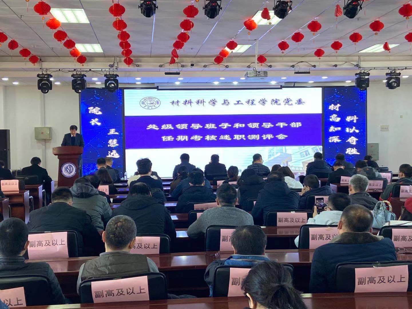 党委于11月24日上午在材料馆8楼多功能厅召开了处级领导班子和领导干部任期考核述职测评会,学院班子成员和全体教职员工参加了会议,会议由学校述职考核工作第六督导组组长齐晓亮主持。
