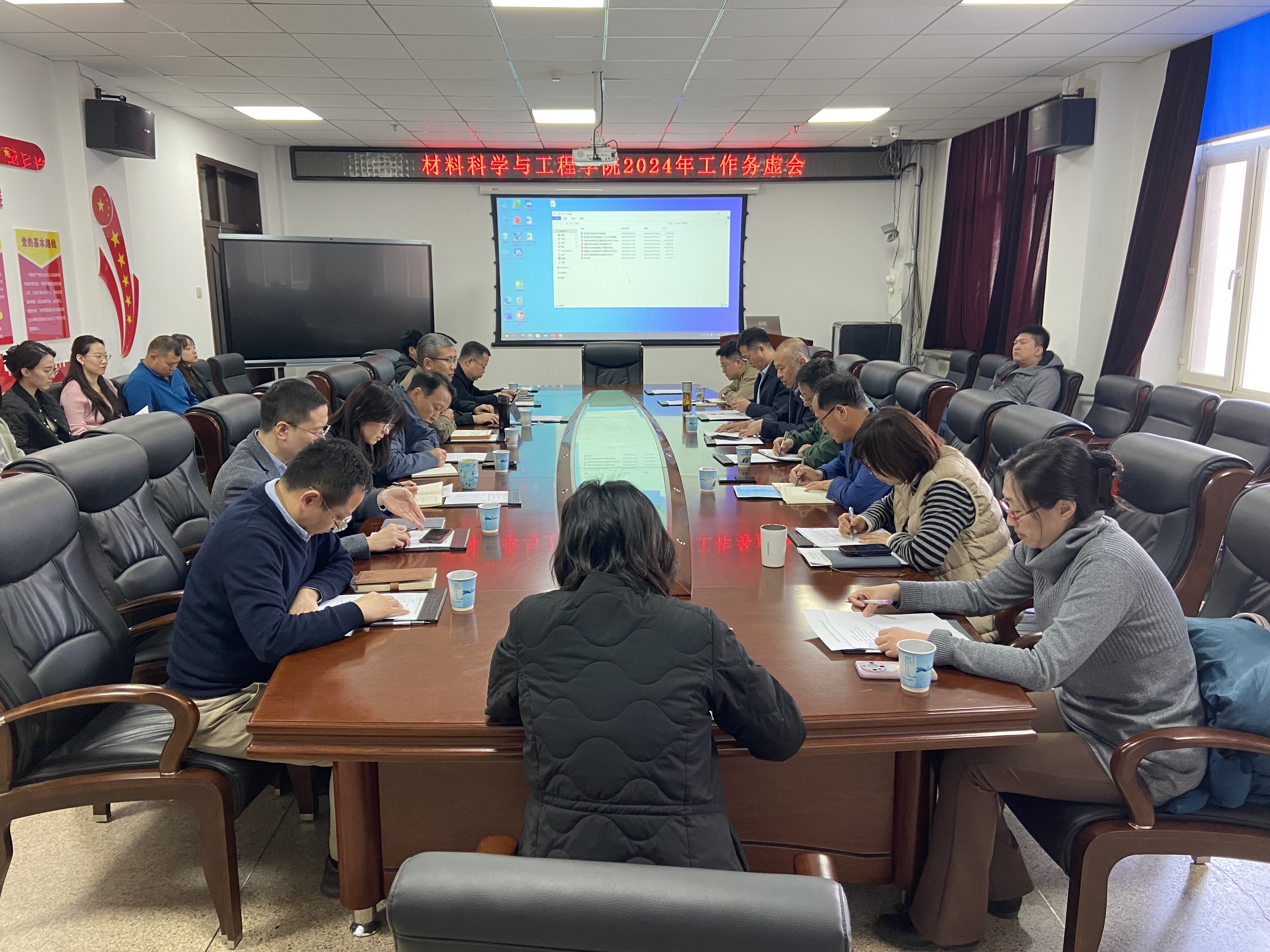 书记刘远表示,2024年是新中国成立75周年,是全面贯彻落实党的二十大精神、实施“十四五”规划、落实学校第十五次党代会任务部署的重要一年,也是学院一流学科加快建设、高质量发展的重要一年。领导班子成员面对复杂艰巨的形势任务,一要在危机中育先机、于变局中开新局,深入思考如何回答好“三个命题”;二要认真学习全国两会精神,深刻领会发展新质生产力是推动高质量发展的内在要求和重要着力点,加快发展材料学科新质生产力;三要持续推进工科集群建设,坚持目标导向和效果导向,围绕国家战略和社会需求,在新材料领域和核心关键技术领域取得新突破。