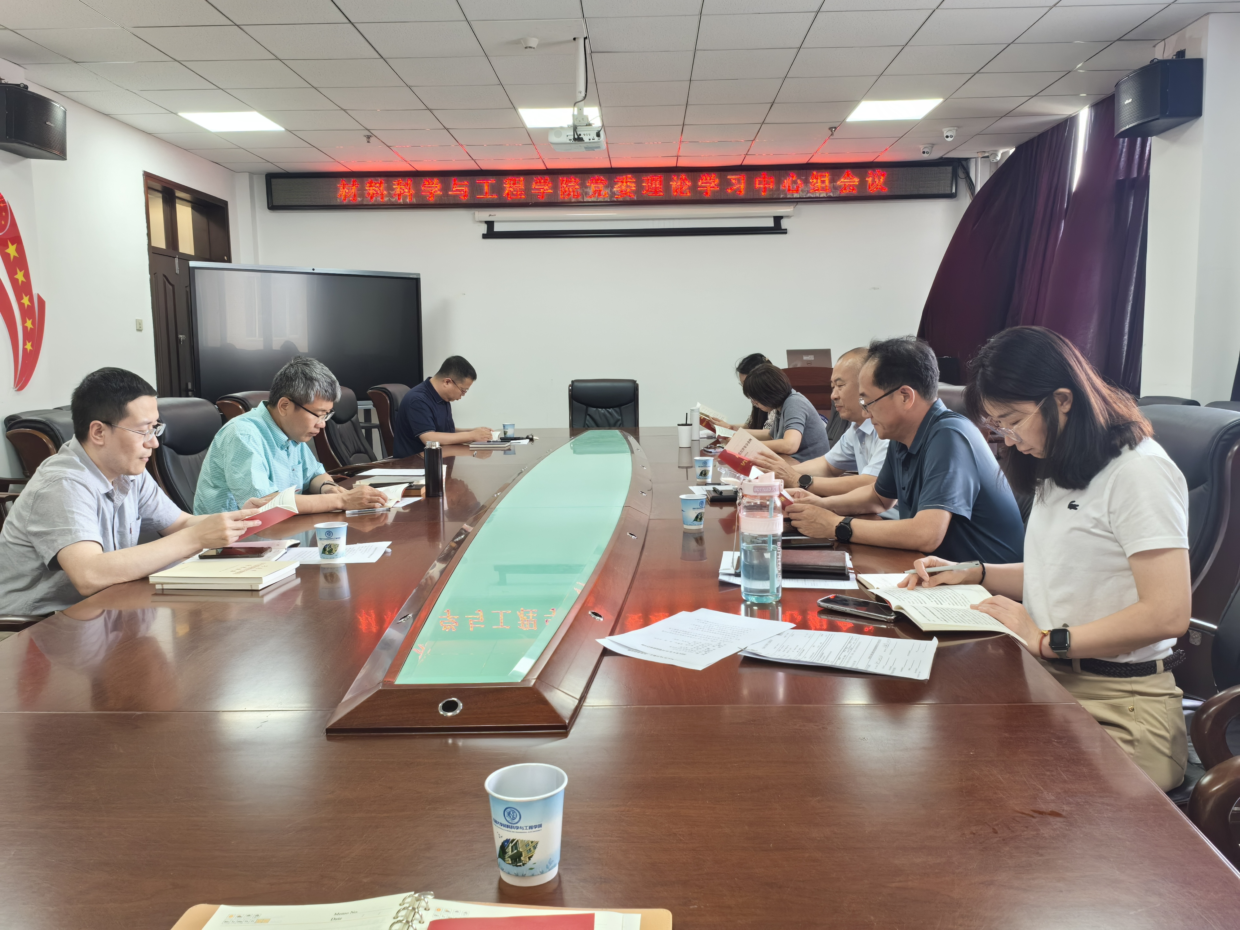 召开党纪学习教育读书班暨党委理论学习中心组集体学习会议,学院领导班子成员、院长助理参加会议,会议由学院党委书记刘远主持。