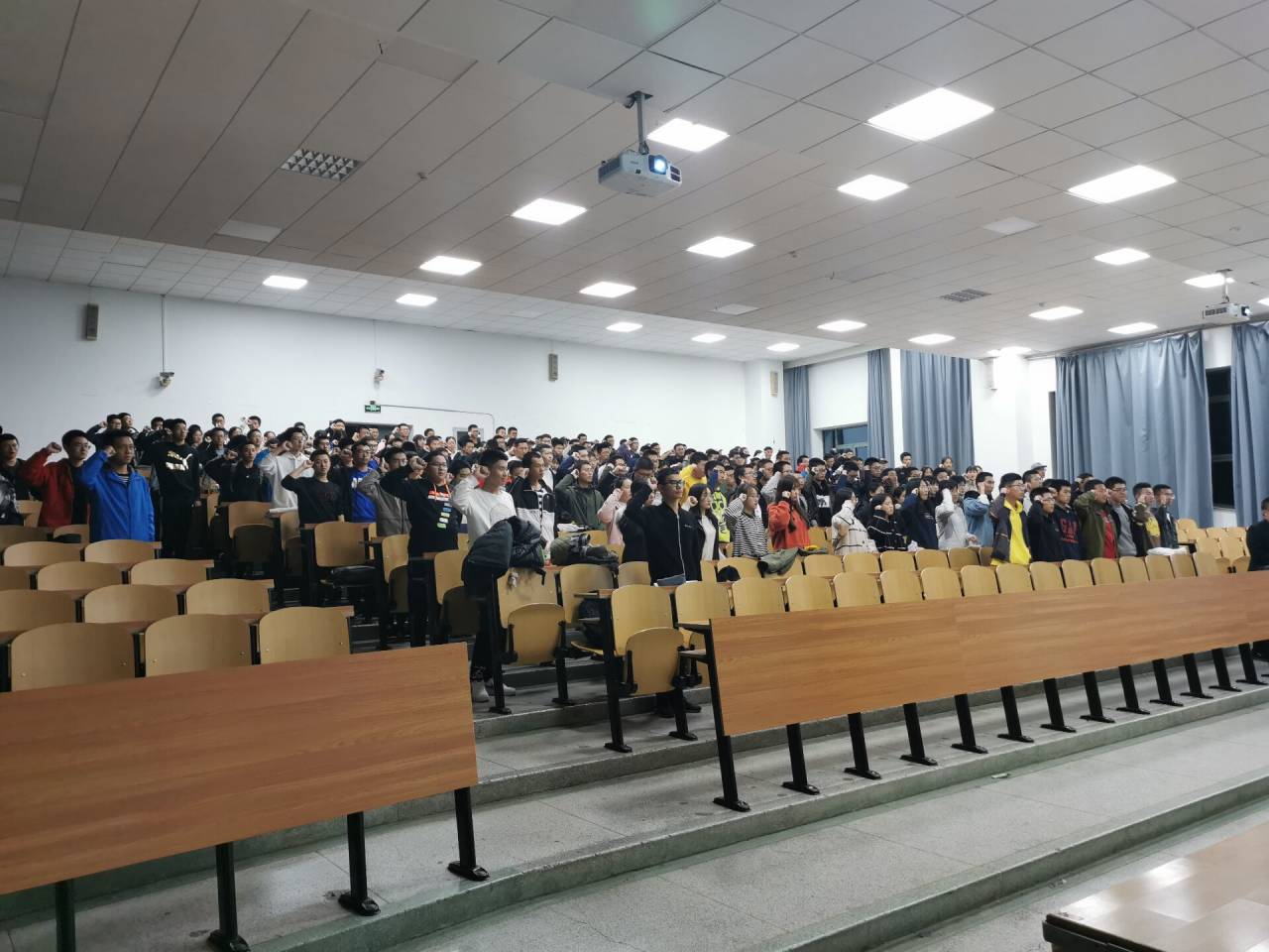 本次活动在全体2019级新生的热烈掌声中拉开序幕。活动伊始,主持人介绍了此次活动的活动流程和岀席老师。随后,主持人带领2019级全体学生重温入团誓词。每一位参加宣誓的同学在这庄严神圣的氛围中,接受了一次思想的洗礼,心灵上的震撼。团课第三项,马克思主义学院杨洪兴老师为大家带来了一节精彩而又深刻的主题团课讲解。杨老师的讲解激情澎湃、对团课内容的说明深入浅岀,同学们都聚精会神,教室中时不时响起一阵阵激烈的掌声。