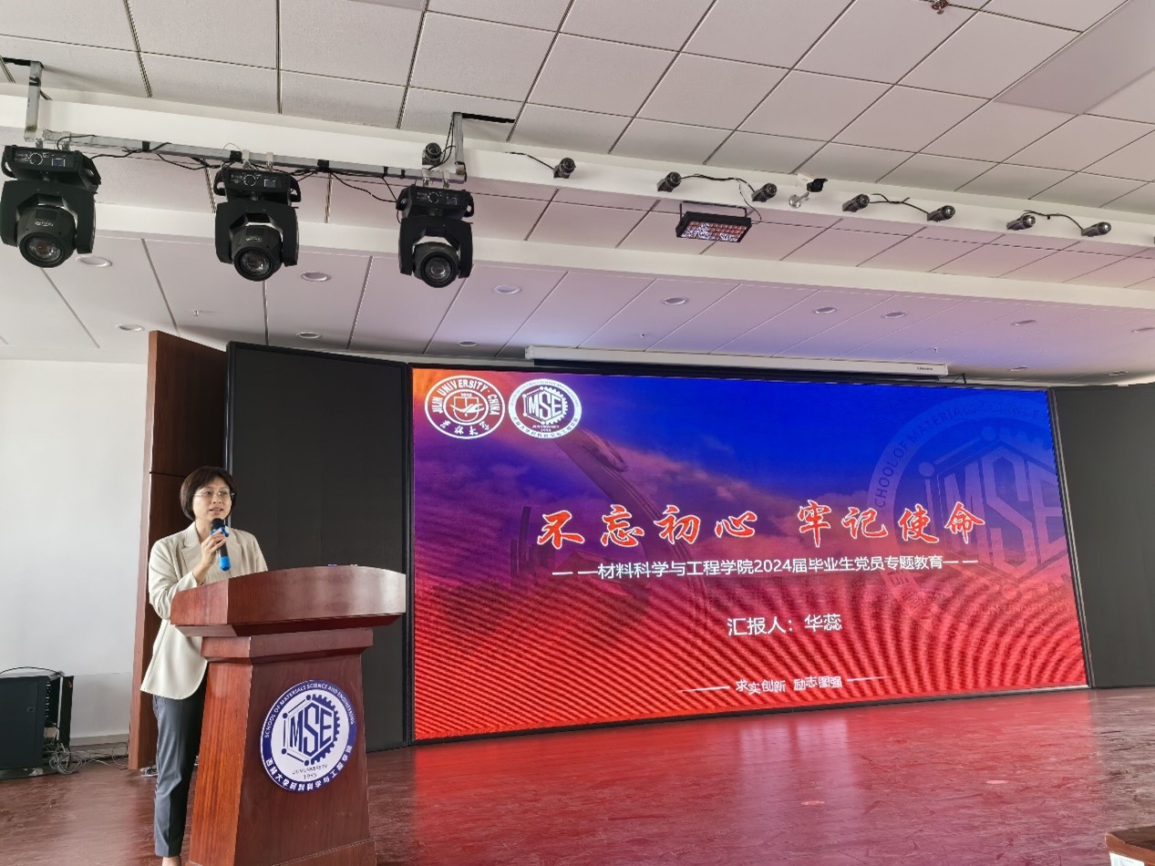 面向2024届毕业生党员,于材料馆八楼报告厅开展了离校前“最后一次党课”主题教育活动。学院党委书记刘远老师作为主讲人,学院党委副书记兼纪委书记曲贵文,党委副书记兼副院长华蕊和学生工作办公室全体辅导员出席。