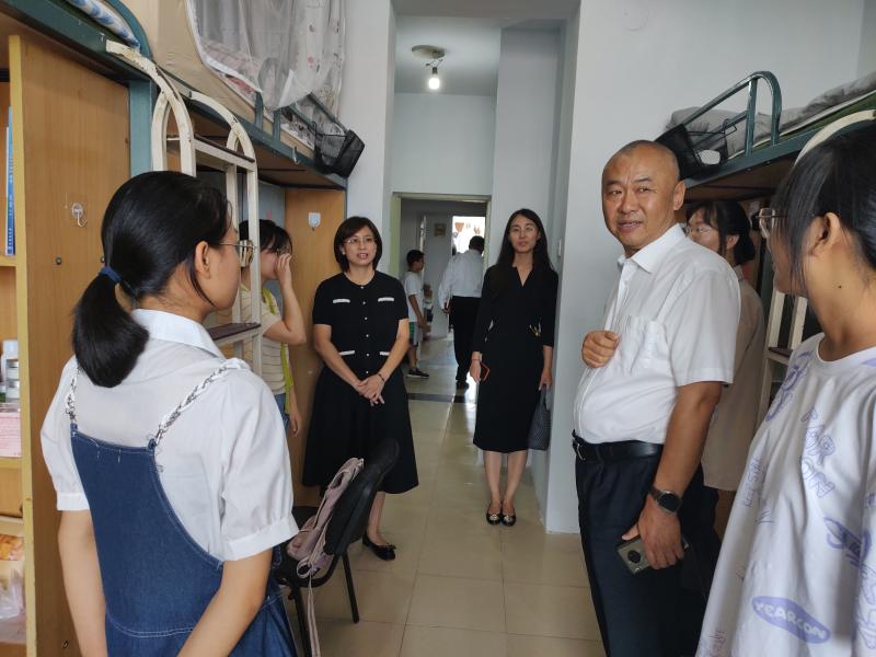 为更好的了解我院2023级本科生新生住宿情况和在校生活适应情况,引领新生尽快适应新生活、新环境,学院党委书记刘远老师、学院党委副书记兼副院长华蕊老师、本科生辅导员严冬老师、王晗老师于8月27日中午走访了南岭校区2023级本科生新生寝室,与刚刚入校报到的2023级本科生新生进行交流沟通。