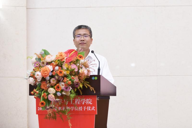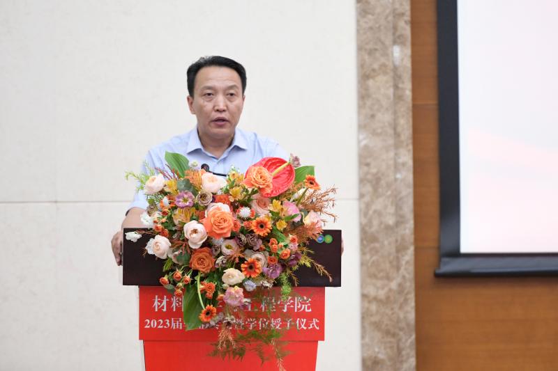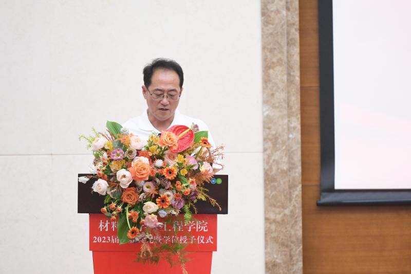院长张立军老师讲话,向即将踏上人生新征程的毕业生致以最诚挚的祝福,向无私奉献、为毕业生成长倾注大量心血的老师们致以亲切的问候和崇高的敬意!张立军院长向毕业生送上了专属于材料人的嘱托。最后向同学们推荐了几本书,希望同学们高效率喧嚣的世界里保持一份“惟精惟一”的内心宁静。