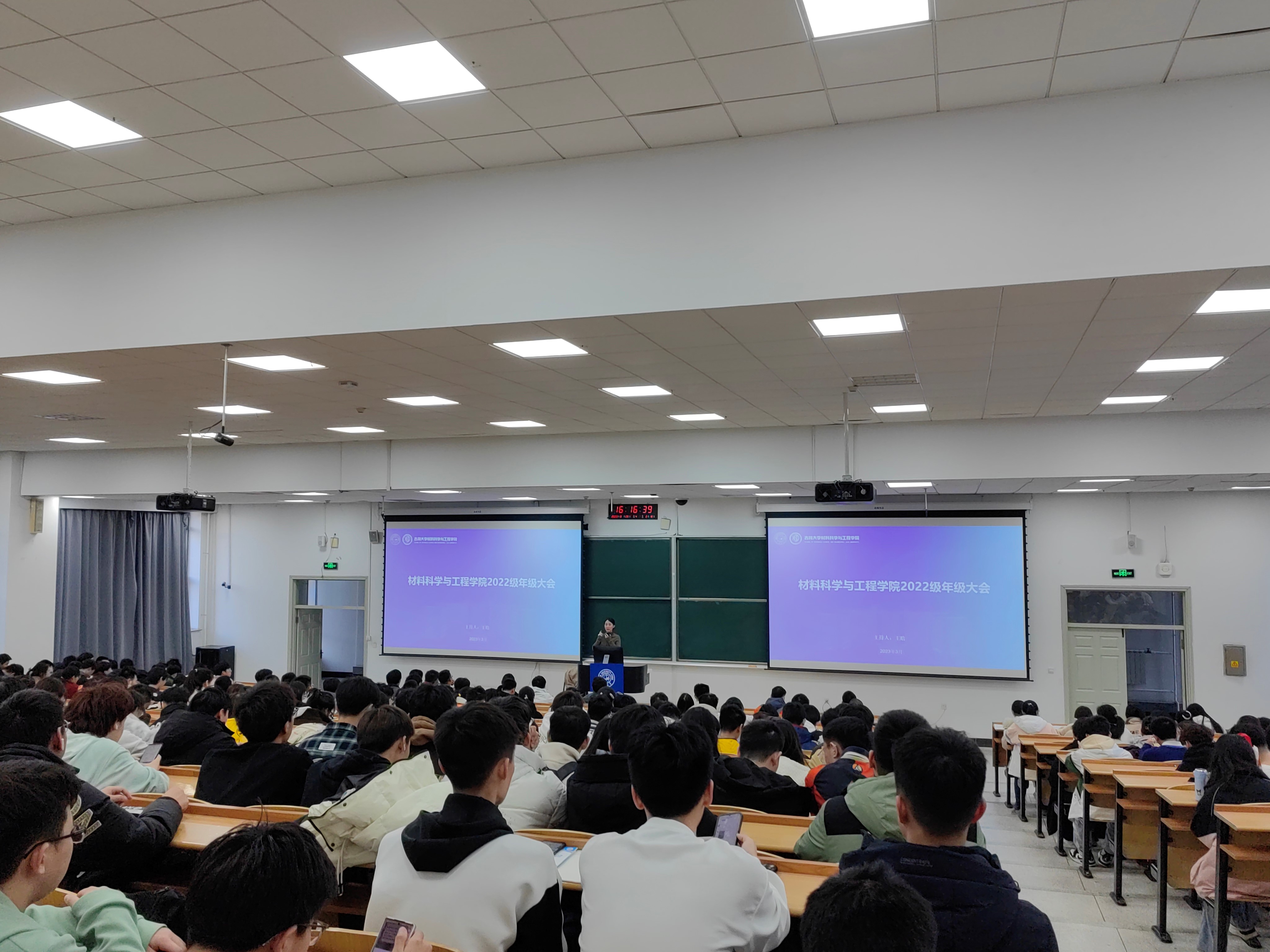在逸夫教育大楼A206召开2022级年级大会,会议由辅导员王晗主持,材料类2022级本科生全员参加。
