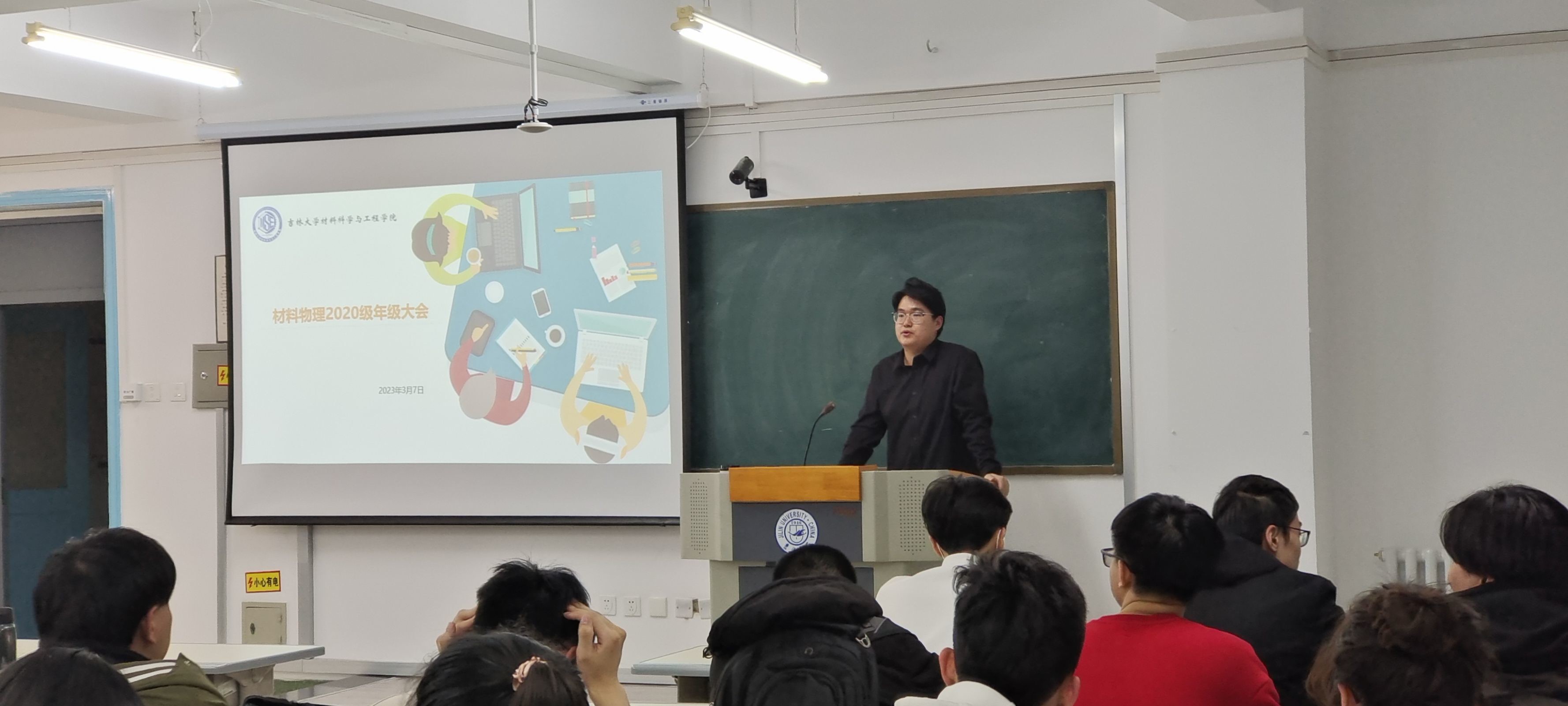 于2023年3月7日晚20:00在第三教学楼415教室召开年级大会。本次会议由材料物理专业本科生辅导员张晗禹主持,2020级全体本科生参与本次年级大会。