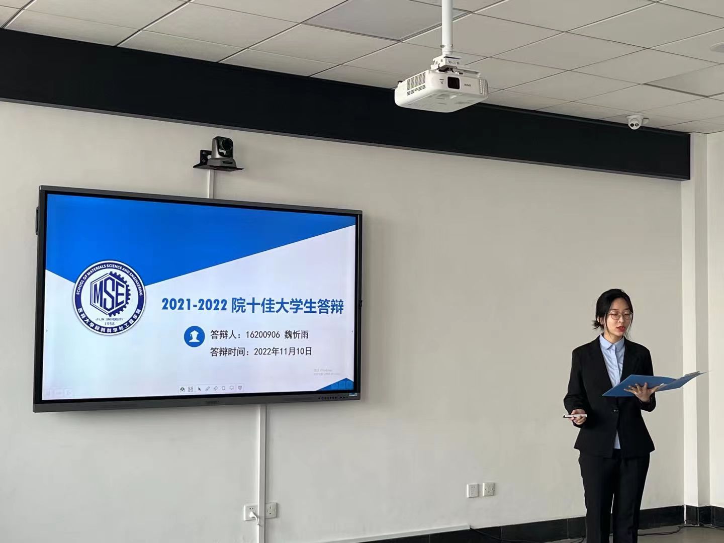 上午九点,本次答辩会准时开始。在主持人的简要介绍后,各位参与答辩的同学依次上场,从平日学习到科研探究,从社会实践到文体活动,材院学子全方位多层次地展现自己的靓丽青春。随后的“十佳班级”的答辩中,各班代表的精彩发言彰显了班团一体的红色风采、体现了班级凝聚力与活力。答辩期间各位评委老师表达了对同学们过往努力的认可与对明日之星的期望,并认真仔细地进行了打分。经过46名同学、17个班级的精彩答辩,本次答辩会圆满结束。