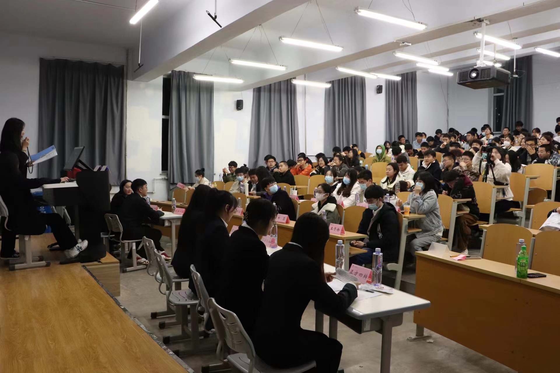 宣讲会由材料学院辩论队负责人宋福元主持。宋福元同学介绍了辩论队的队伍性质、历届荣誉、成员组成及日常活动等方面,而后,辩论表演赛正式开始,正反两方就“相似/互补的性格更能使爱情长久”这一辩题展开激烈辩论,向2022级同学们全面生动展地现了辩论队的风采。辩论结束后,现场进行了嘉宾与观众提问环节,宣讲最后,进行了新生赛抽签仪式,同学们积极参与,现场氛围和谐融洽,