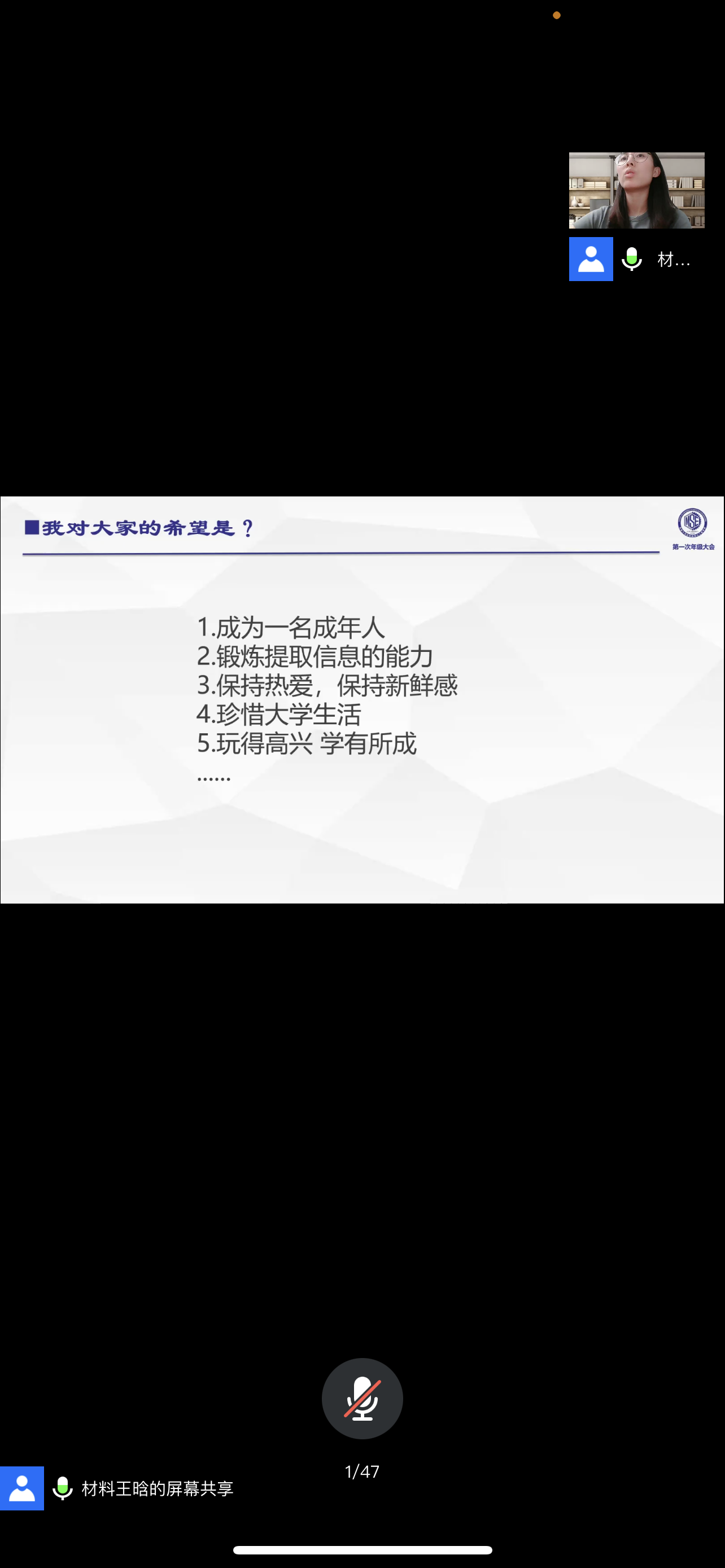 。以学校的文化底蕴,历史背景为基点,介绍了学校的发展历程,学科建设等,带领同学们深入了解学院的学术成果,师资队伍以及发展就业前景。重点强调了新生应该注意的事项,从疫情防控,校园安全,寝室卫生,校规校纪等方面进行新生教育,希望大家锻炼提取信息的能力,并保持对大学生活和学习的热爱!最后,华蕊老师对同学们提出殷切期待,大学是人生的新起点,愿同学们能乘风破浪,扬帆起航,学习和兴趣两把抓,在增长知识能力的同时提高文化素养,培养德行品质,做到学有所思、学有所悟、学有所获,书写人生的新篇章。