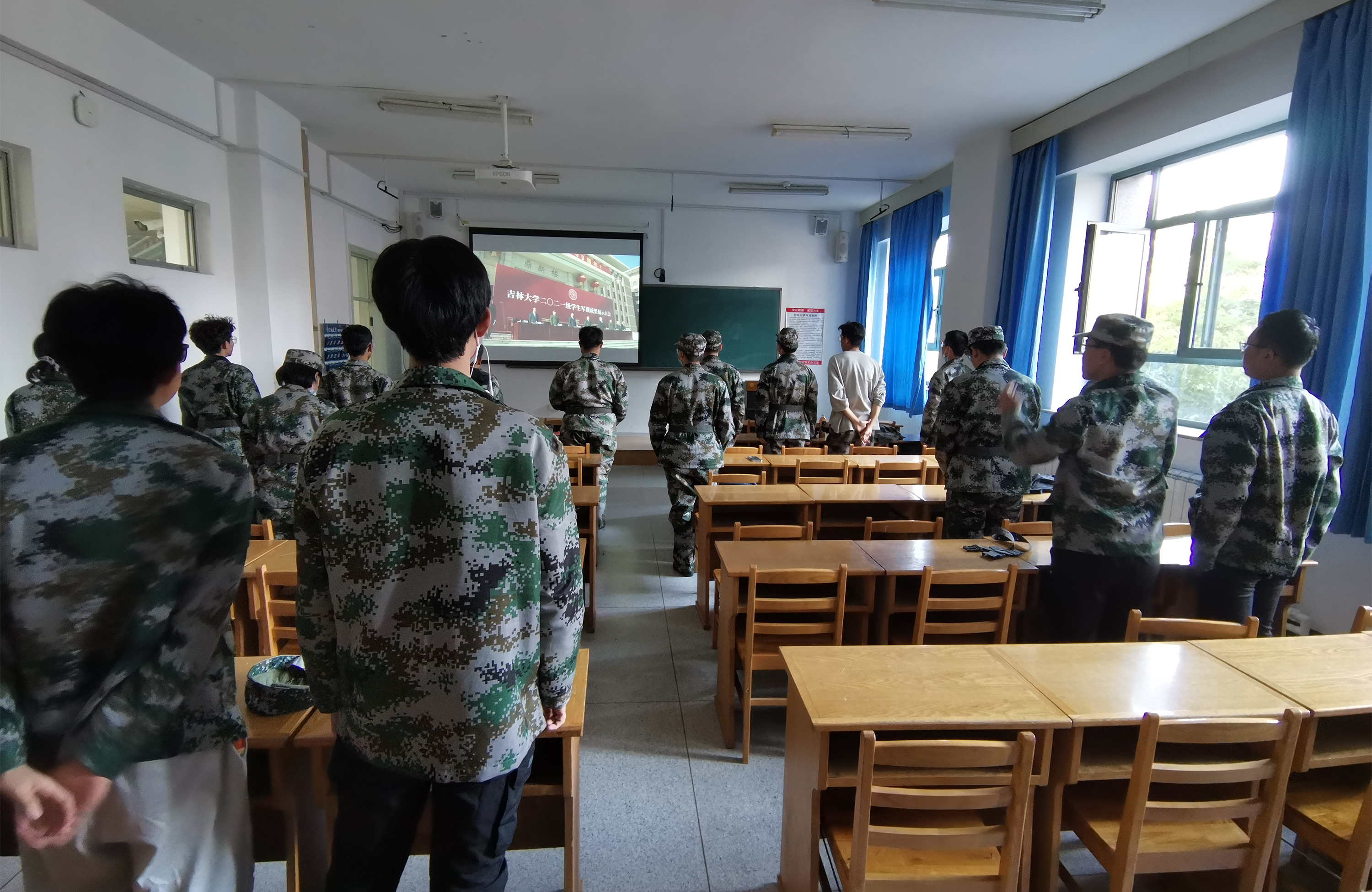 参加主会场军训成果展示的同学认真完成汇报任务,展现了材料学子的优良精神面貌。