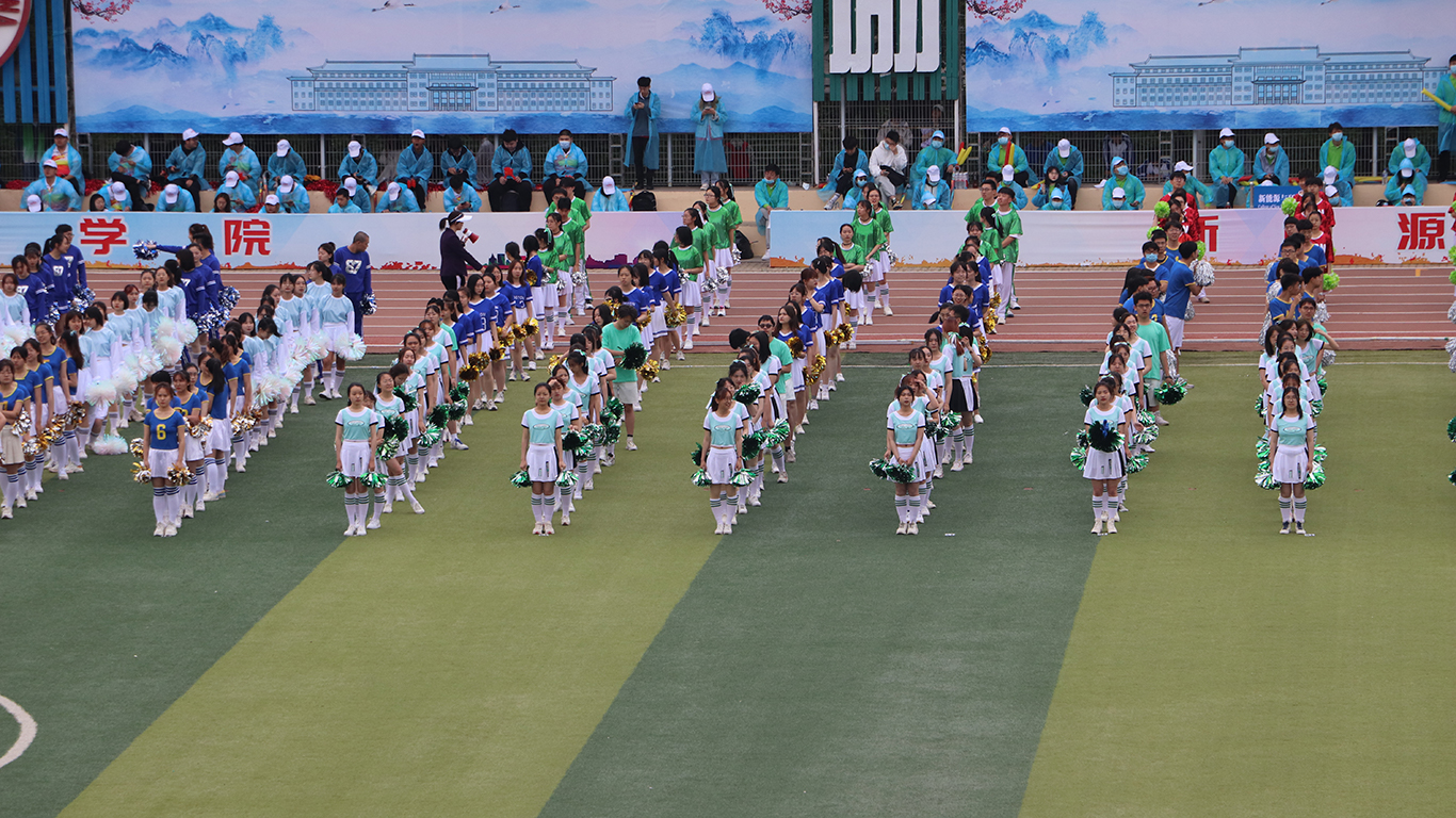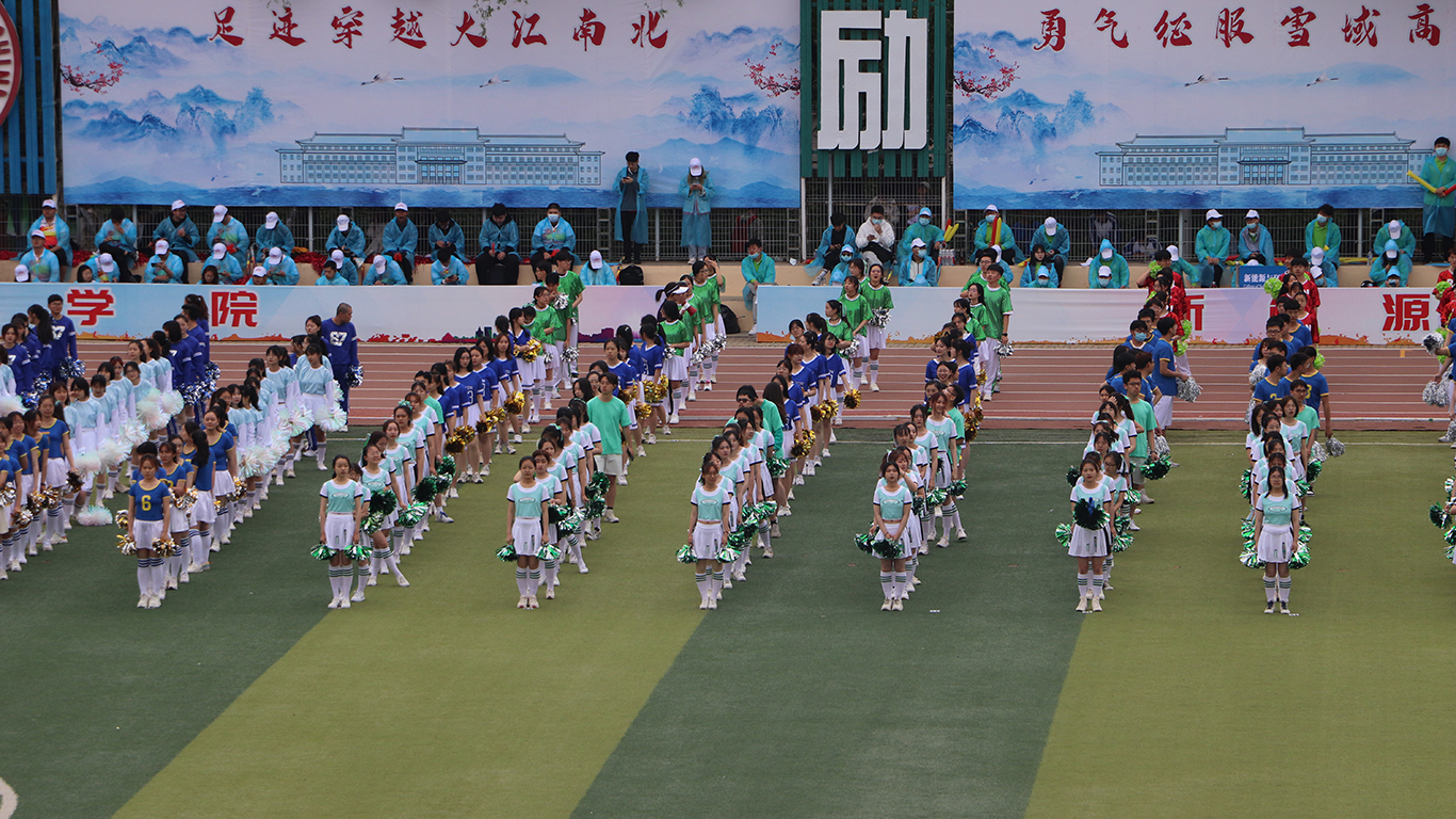 上午8:00,开幕式开始,相继进行100米决赛和武术表演。9:00啦啦操表演正式开始,各学院的啦啦操方队按照原先排好的场次就位,在主持人指示下轮流入场,跟随音乐《少年》翩然起舞,展示他们一个月来辛勤练习的成果。在音乐的结尾,各个学院的方队分别展示出自行设计的动作,并喊出自己的口号,展现着各个学院独有的风采。其中,老师们还设计了《少年中国说》中部分语句的动作表演,为啦啦操的比赛增添了不一样的色彩。最后,在大家的掌声中,啦啦操表演比赛圆满完成,开幕式顺利结束。