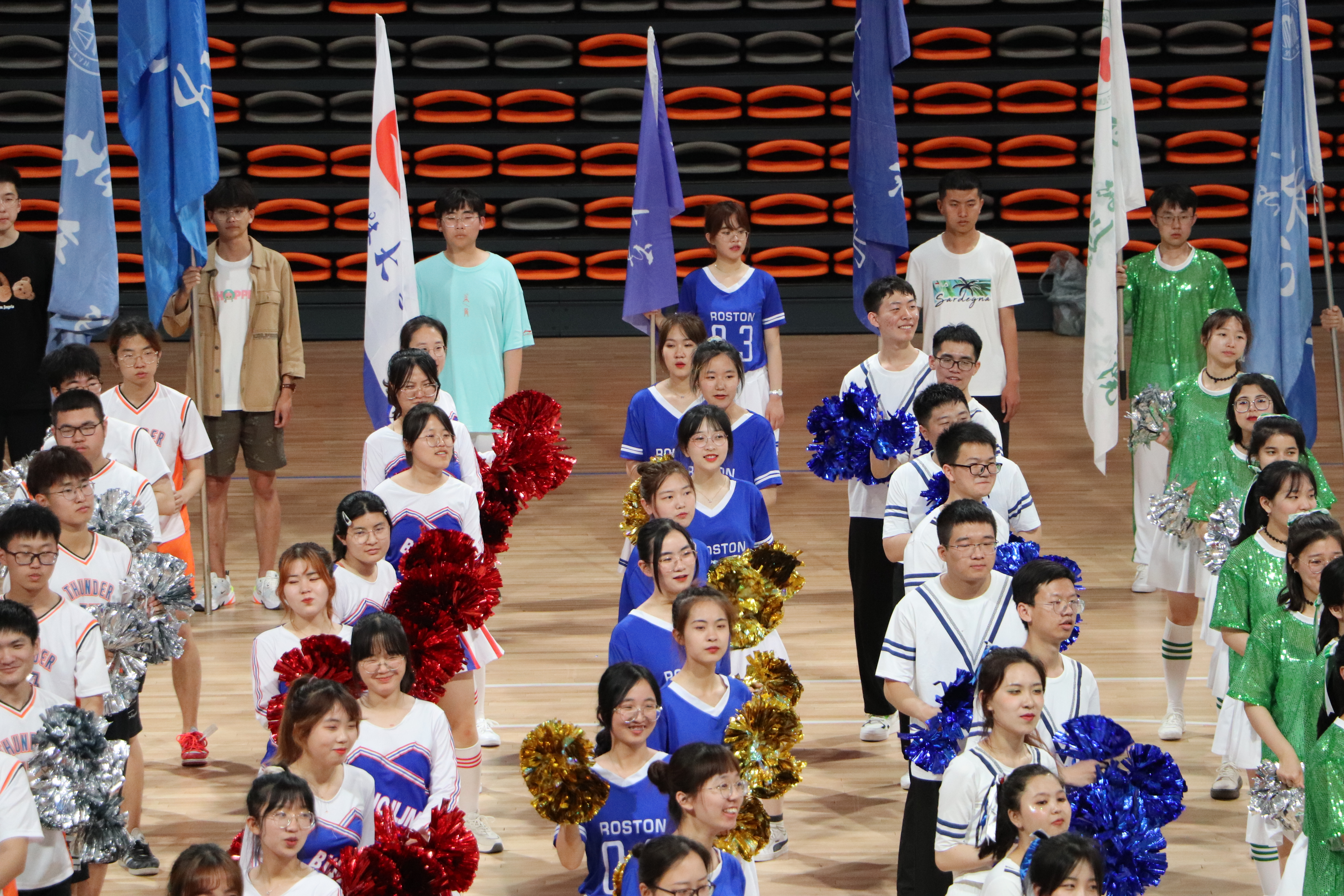 13:00,公开赛开幕式开始,各个学院的院旗、院牌手和十名方阵代表在体育馆篮球场集合,在主持人和裁判队的带领下现场学习动作,跟随音乐舞蹈,将全场的气氛炒热。随后,比赛正式开始,各学院的啦啦操方队按照原先排好的场次就位,在主持人指示下轮流入场,跟随音乐《少年》翩然起舞,展示他们一个月来辛勤练习的成果。在音乐的结尾,各个学院的方队分别展示出自行设计的动作,并喊出自己的口号,展现着各个学院独有的风采。14:50,各方队全部表演完毕,各学院的院旗、院牌手再次回到比赛场地参加闭幕式,裁判、评委进行点评后,尹君老师安排了比赛后的啦啦操彩排任务。最后,在大家的掌声中,阳光体育啦啦操公开赛闭幕式圆满完成,啦啦操公开赛顺利结束。