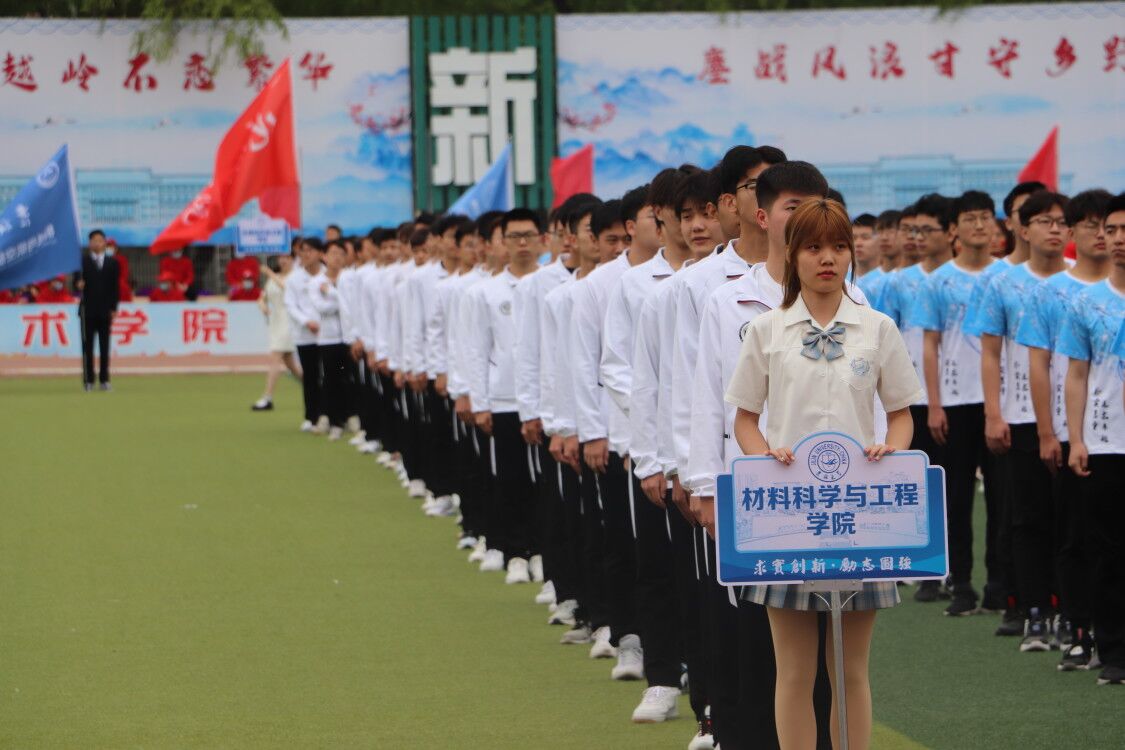 第60届田径运动会在我校前卫南区体育场成功举行。运动会开幕式上,材料学院方队的同学们精神抖擞,英姿飒爽,以自信的姿态,响亮的口号,展现出了材料学院昂扬向上的精神风貌。