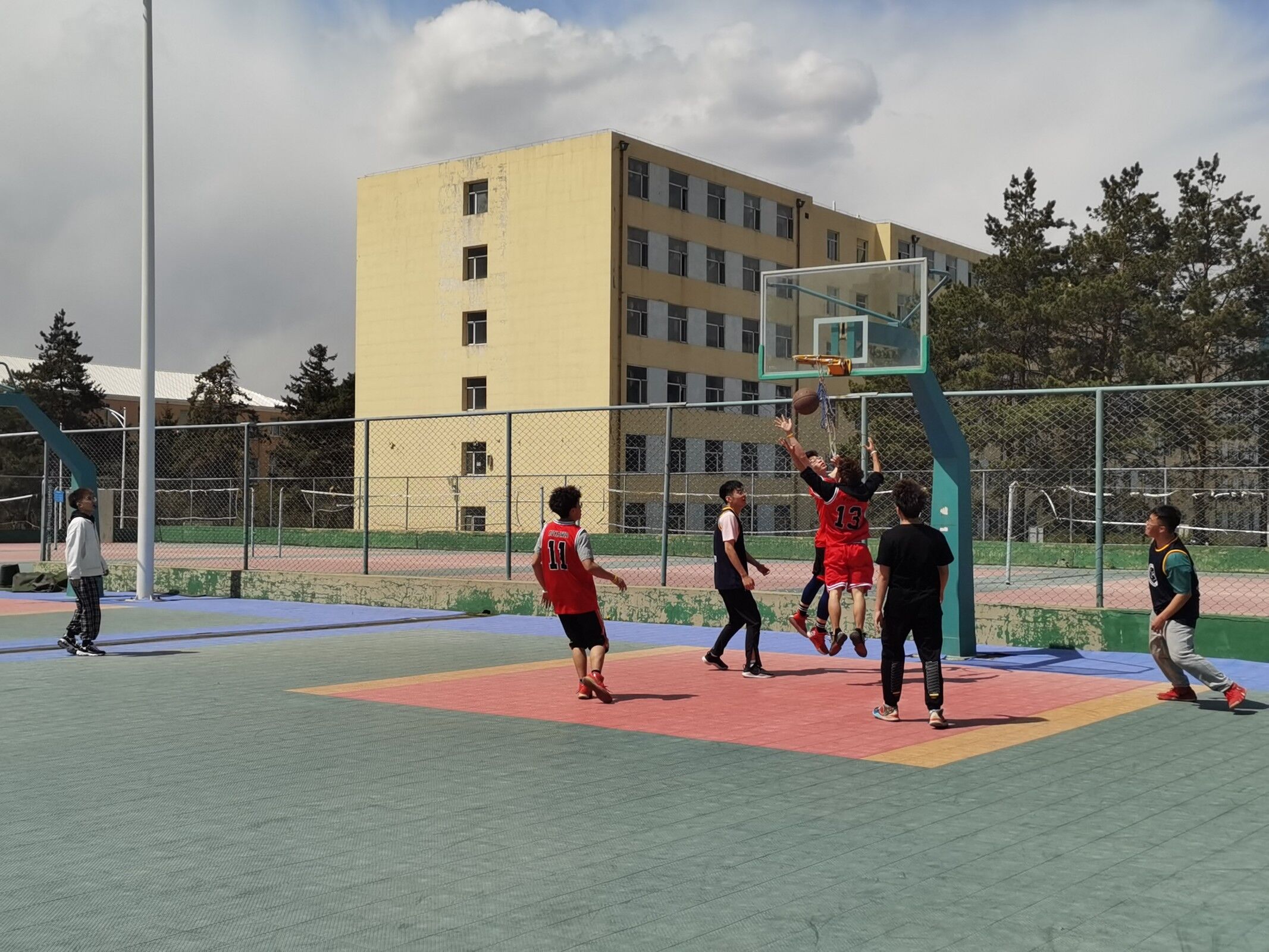 本次比赛是以同年级的班级为单位组队,4月25日—4月28日进行小组赛,4月29日—4月30日进行淘汰赛与总决赛。比赛还未开始,球员们早已抵达赛场,做着紧张有序的准备活动,未参赛的同学也找到班级所在位置,准备为班级篮球运动员加油助威。赛场上,队员们全力以赴,精妙配合,愈战愈勇,抢板、上篮、三分,一次次征服篮筐;赛场下,观众摇旗呐喊,不断为队员打气、喝彩。在半决赛中,20级13班“tpc胜利队”全力投入比赛,经过激烈的对抗,18级“材料飞豹队”以微弱的优势取得胜利。本着公平原则,20级13班“tpc胜利队”获得冠军,18级7、10、12班“打完去金池”联队获得亚军,18级“材料飞豹”联队获得季军。“杏花杯”篮球赛完美谢幕。