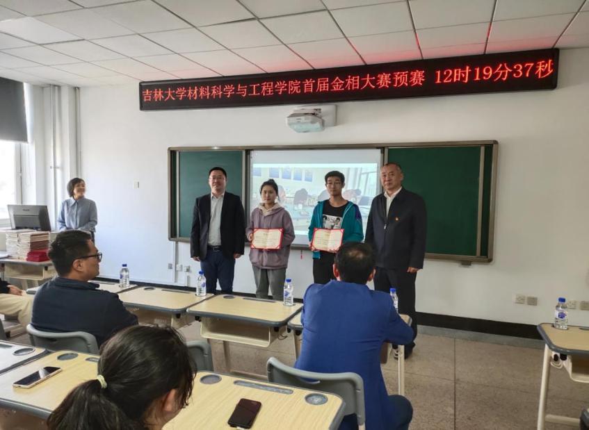 首届金相大赛的序幕。参赛选手经过4月12日至4月16日的理论培训及操作练习后,于4月17日在逸夫机械材料馆417室参加预赛。学院于4月26日在逸夫机械材料馆421室举行预赛颁奖仪式,材料学院党委书记刘远,副书记曲贵文,副院长韩奇钢,系主任王国勇,教务办主任于漫以及2018级、2019级辅导员刘艳丰、杨美晨出席本次颁奖仪式。