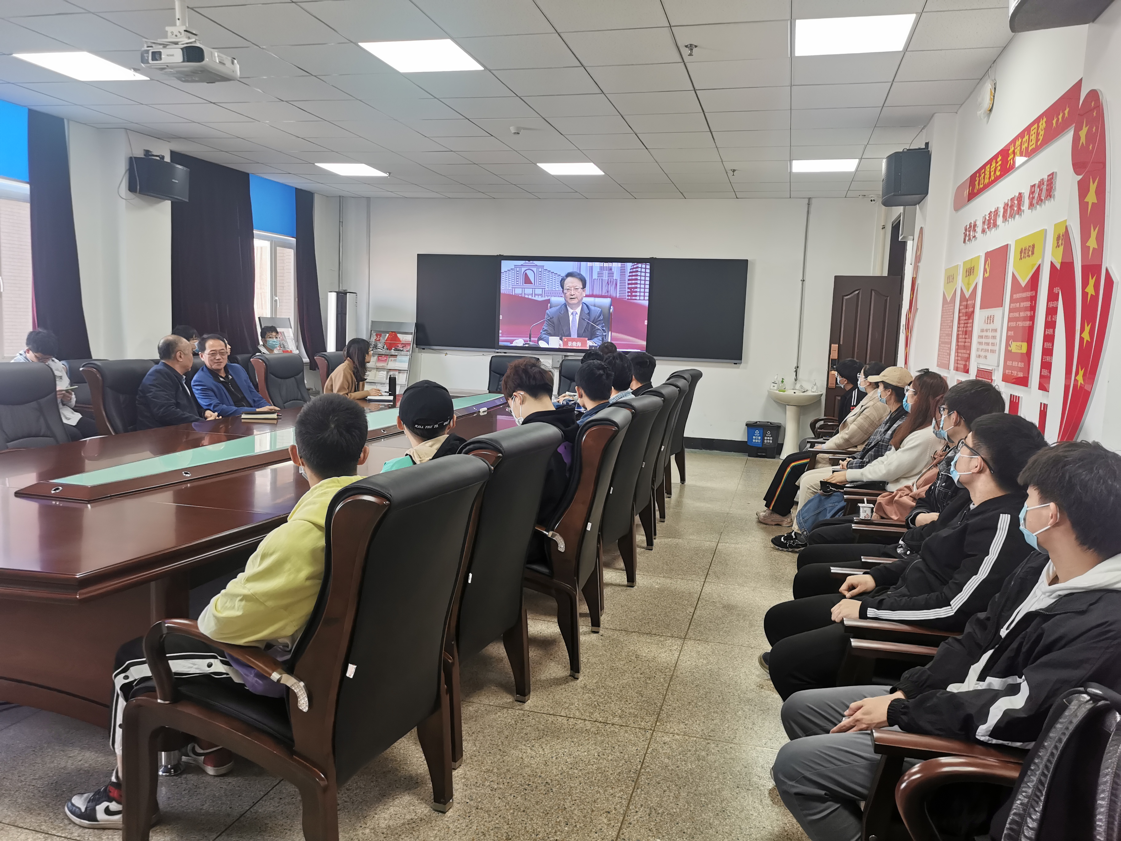 举行。吉林省委书记景俊海作专场报告,对吉林发展的重大机遇、良好环境和美好前景进行了深入介绍,向全省高校毕业生发出邀请。按照学校相关工作要求,学院在南岭校区逸夫机械材料馆410设置分会场,学院党委书记刘远同志、党委副书记曲贵文同志、全体辅导员、毕业年级学生代表在分会场观看了本次会议。