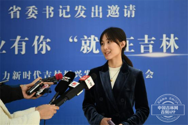 学院本科生辅导员王晗在报告会主会场接受人民日报、吉林日报、吉林广播电台等媒体的采访,她表示“作为一线老师,我会积极地引导学生留在吉林,希望能在同学们就业的选择上提供指导和帮助,让大家一起为新时代吉林发展出一份力。”