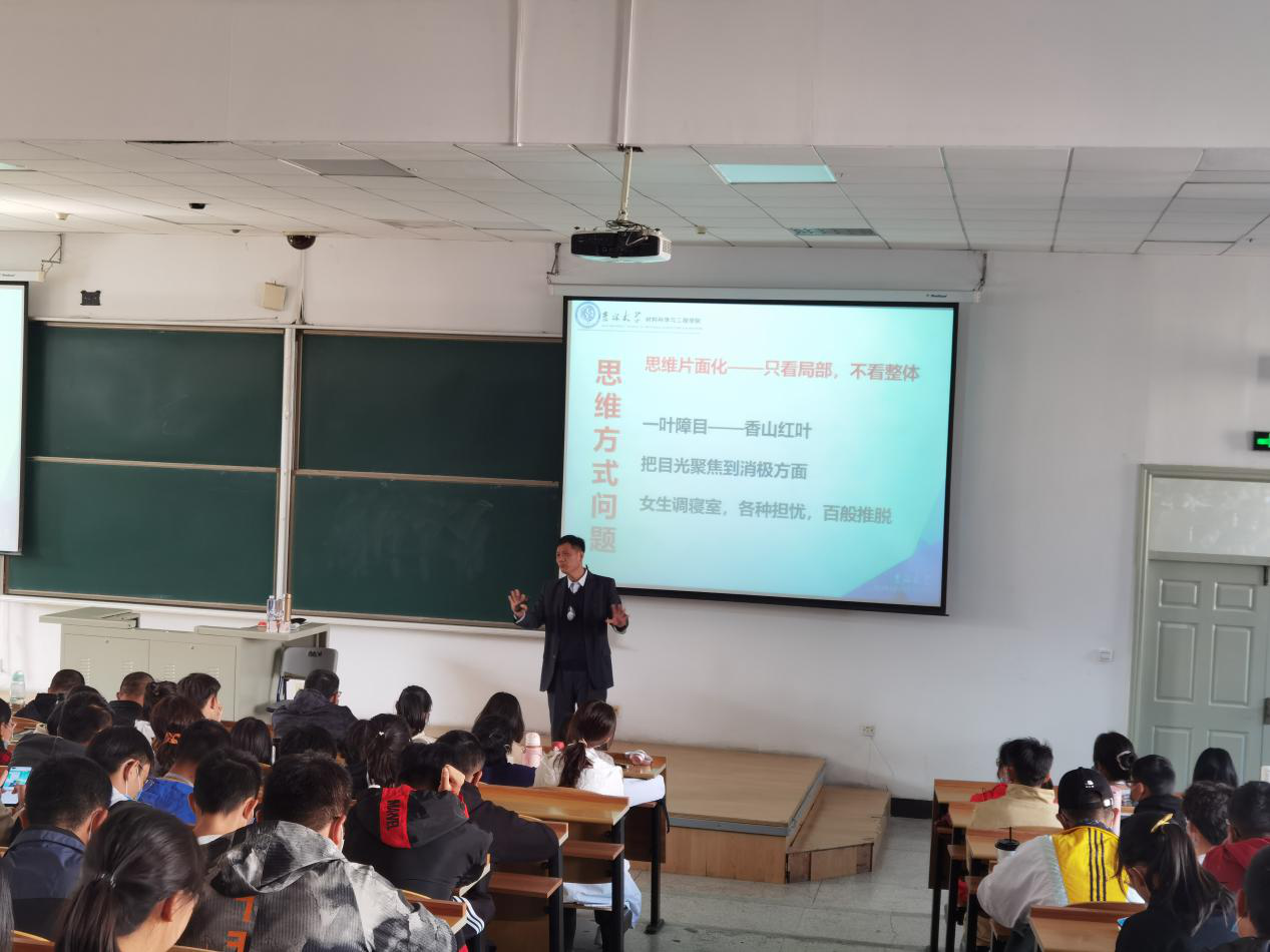 活动伊始,李东生书记以生活实例向同学们阐述健康的真正含义,身心健康并不仅仅指身体健康,还需保证自身的心理健康、态度健康、学习健康。李书记强调同学们不要忽视或回避出现的心理问题,要重视及正确对待心理波动;同时引导同学们要善于利用身边资源加以解决,通过阅读心理方面的报刊和书籍了解心理健康知识。随后,李书记列举2020年度十佳大学生的事例,鼓励同学们向优秀看齐,向榜样学习,在大学生活里发挥自己最大的优势,取得优异的成绩。李书记师用哈佛大学一项历时25年的跟踪研究数据表明:没有目标的人,很有可能会生活在社会的底层,并有怨天尤人的心理 ;有清晰且长期目标的人,最终会成为顶尖成功人士、行业领袖或社会精英。李书记引导同学们正确树立人生目标,通过短期目标越过险阻,通过长期目标爬上山峰。