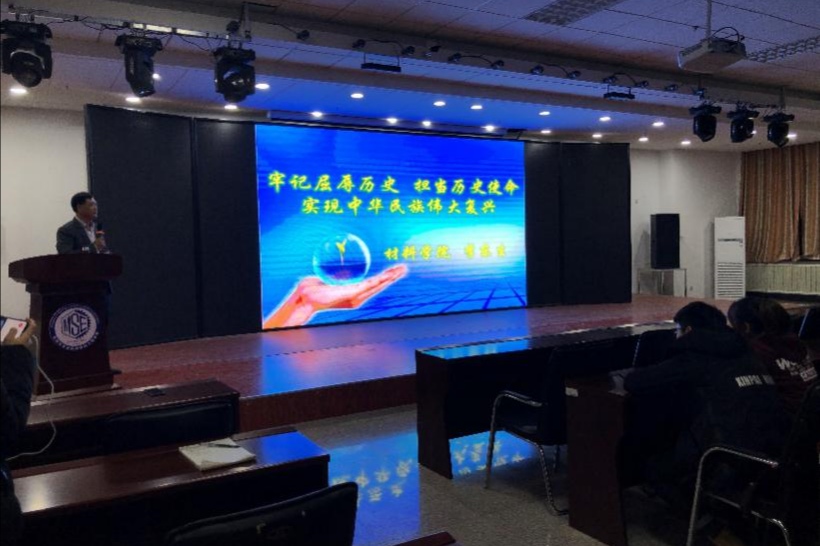 2019年11月8日晚,材料学院党委副书记兼副院长李东生老师在逸夫机械材料馆八楼为本科生党员上了一次题为“牢记屈辱历史,担当历史使命,实现中华民族伟大复兴”党课。