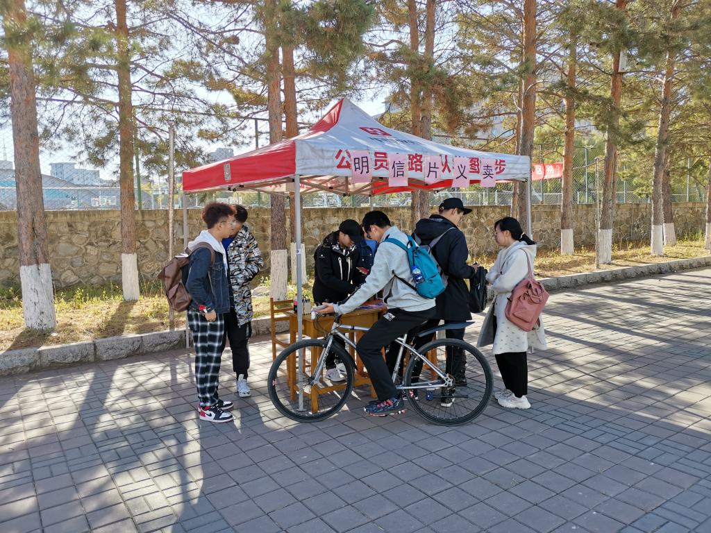 活动当天,相关负责同学布置活动需要的场地,准备活动需要的爱心明信片,开始了明信片的售卖活动,明信片内容征集了团日活动的精美照片和部分同学投稿来的团日活动照片,吸引了很多的同学前来购买。本次爱心卡片售卖的资金将公开透明并全部用于公益捐款,不少同学带走他们心仪的明信片奉献爱心的同时,也为本次团日活动留下了非比寻常的意义。最后,明信片售卖完毕,本次“重温光荣岁月”自制明信片爱心售卖活动圆满完成。
