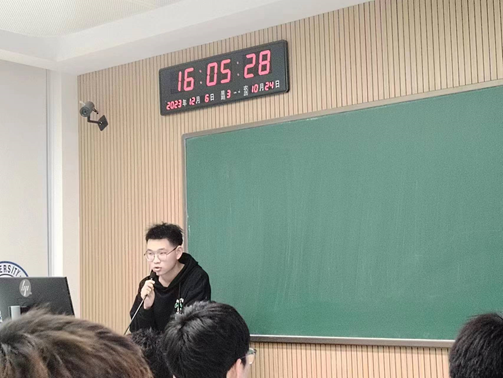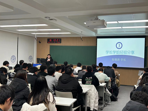 会议随后展示了成绩前十名同学的排名,以榜样力量激发学生学习热情,并邀请各班各科单科第一的同学轮流上台交流学习经验和学习方法。优秀学长张锦涛发言分享学习经验,他根据本专业是理科专业的特点,结合个人经历,在谈话中着重强调了打好数理基础的重要性,同时还对同学们期末复习的方法提出了建设性的建议。会议结束后,多名同学留下来向学长提出问题,都得到了细致耐心的解答。
