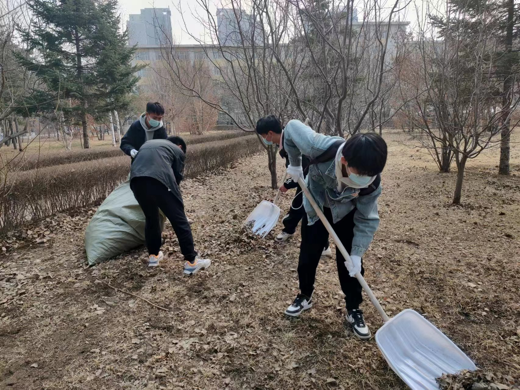 为确保此次活动有序进行,后勤服务中心老师提前为同学们分发口罩、手套以及打扫工具,并细心讲解扫落叶和收落叶工具的用法。活动伊始,同学们在老师的安排下到达指定区域并自行分工。紧接着开展起如火如荼的清扫,同学们秉持认真负责的精神,团结合作,互相帮助的要求。经过将近两小时的努力,圆满完成此次活动。