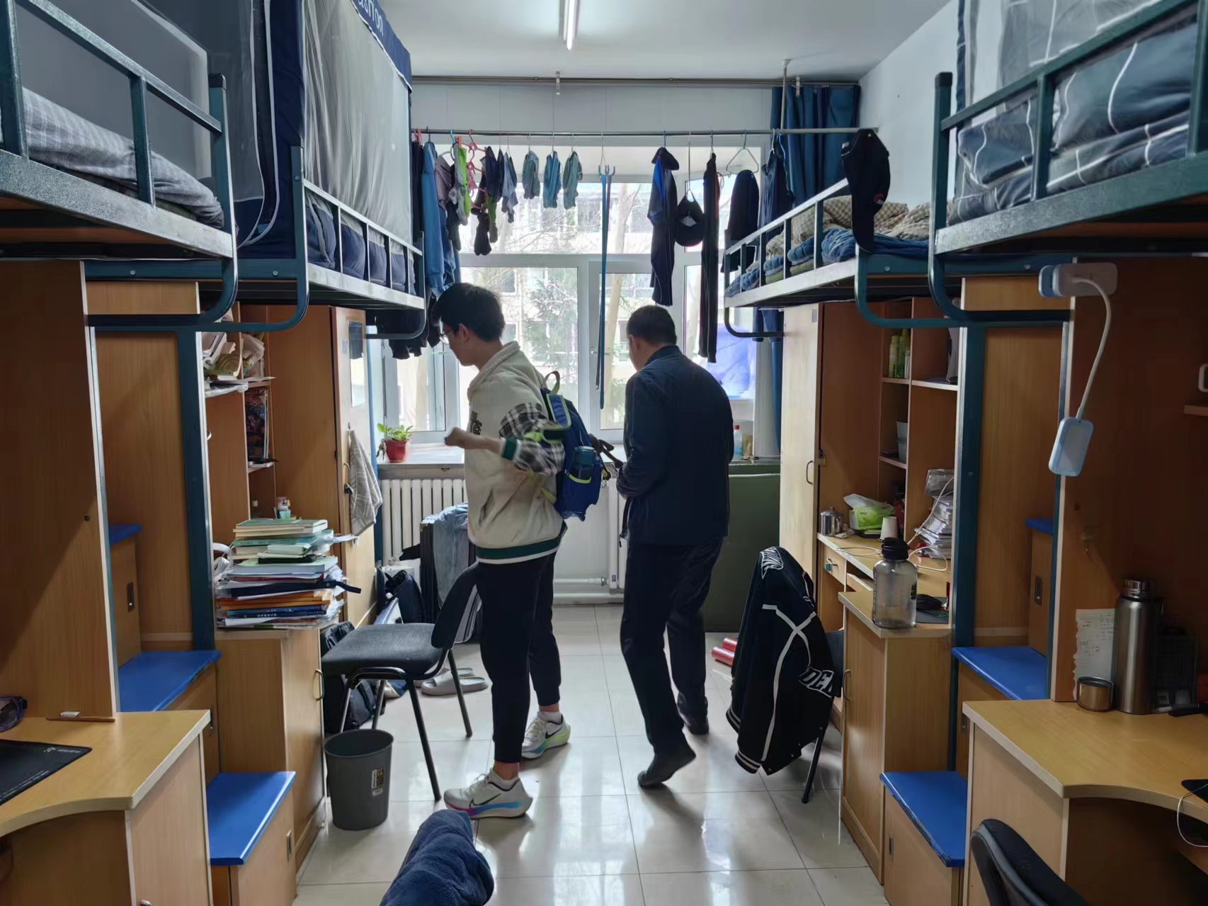 在本次走访寝室过程中,严冬老师详细检查了寝室内务和卫生情况,并进行了寝室安全稳定的排查,对寝室的内务卫生情况进行提醒,督促寝室保持定时扫屋除尘,保持寝室卫生。
