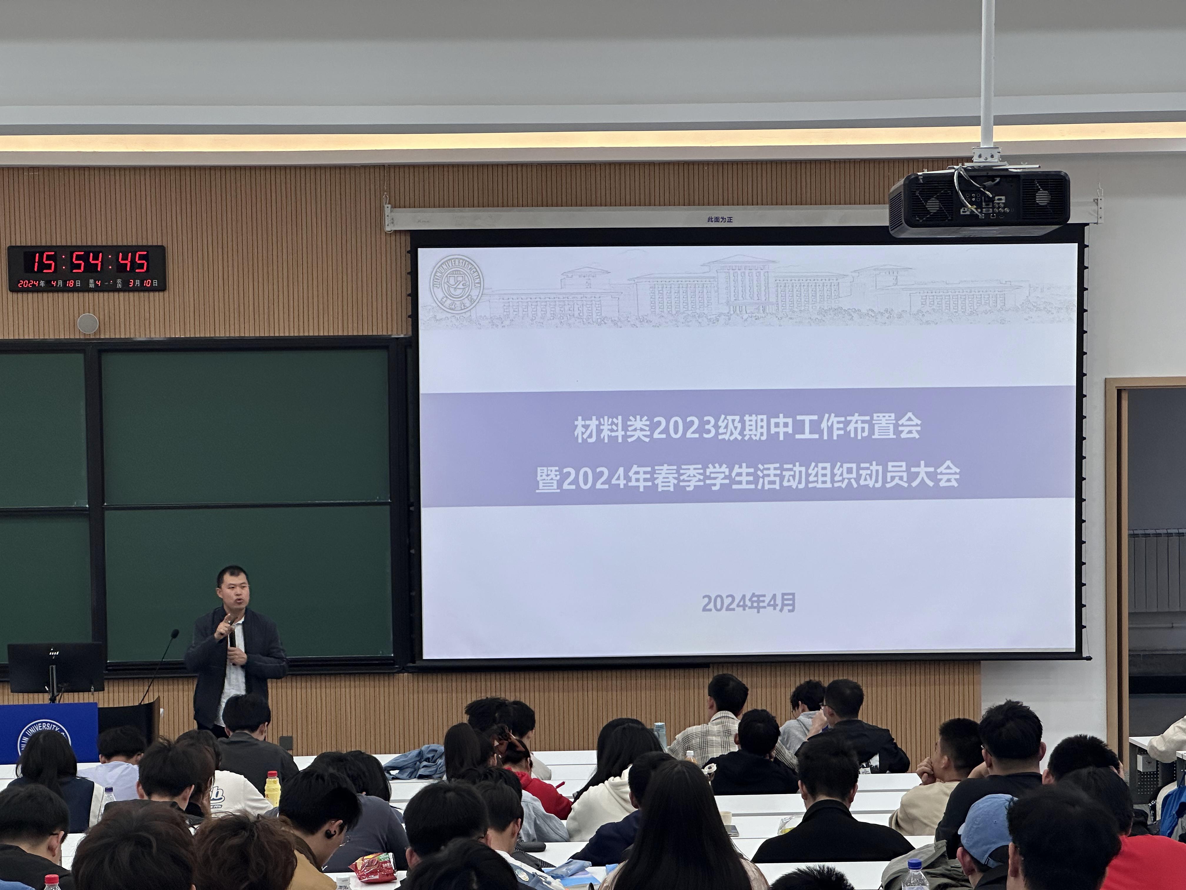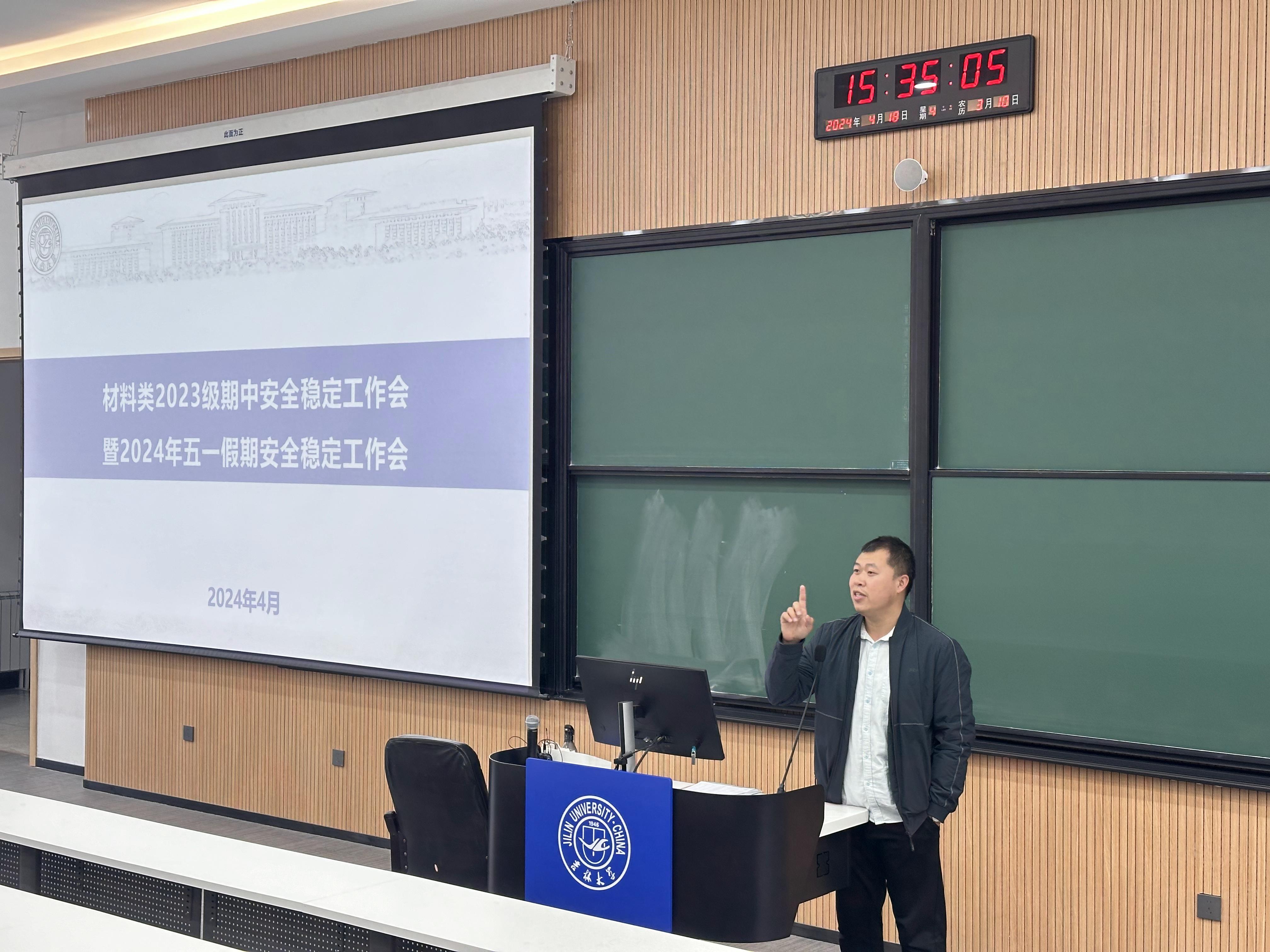 于2024年4月18日召开了五一假期安全稳定工作会暨材料类2023级期中工作布置会。此次会议由2021级、2023级辅导员严冬老师主持。