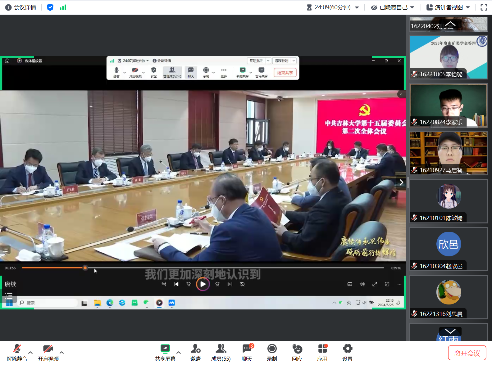 深入贯彻落实总书记对黄大年同志先进事迹作出重要指示工作回顾》,同学们深受触动,纷纷表示要将个人发展与国家需求紧密结合,以实际行动践行共产党员的初心和使命。《巍巍吉大》纪录片的播放进一步加深了同学们对学校的了解和感情。
