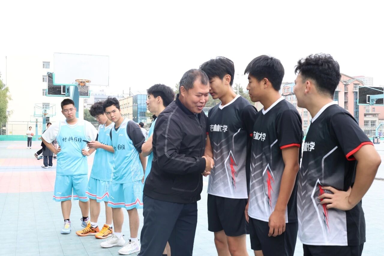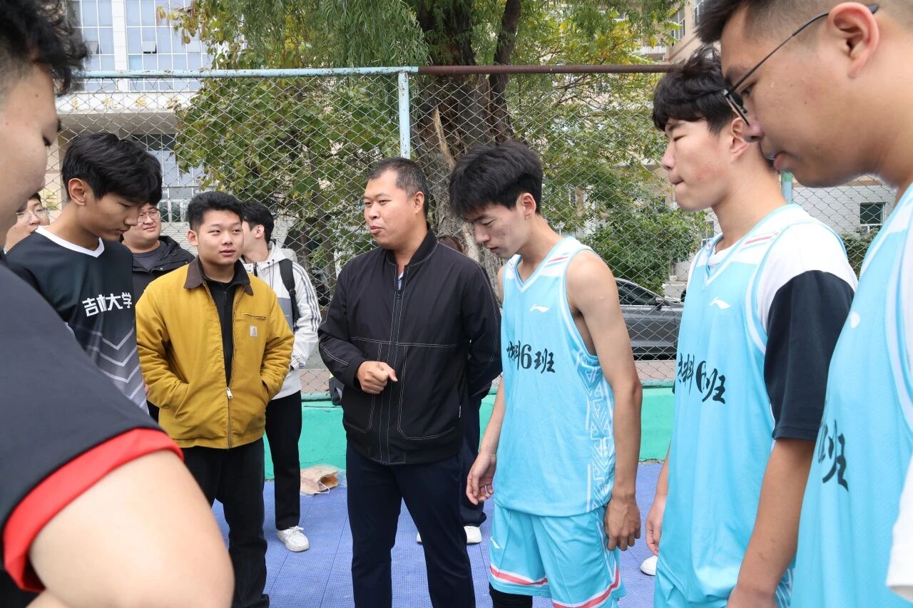为保证比赛的公平公正与顺利进行,本次新生篮球赛特别邀请了体育学院的李鹏举老师和于雷老师担任裁判,学院男子篮球队队长向旭东担任副裁,陈志文教授为本场比赛开球。