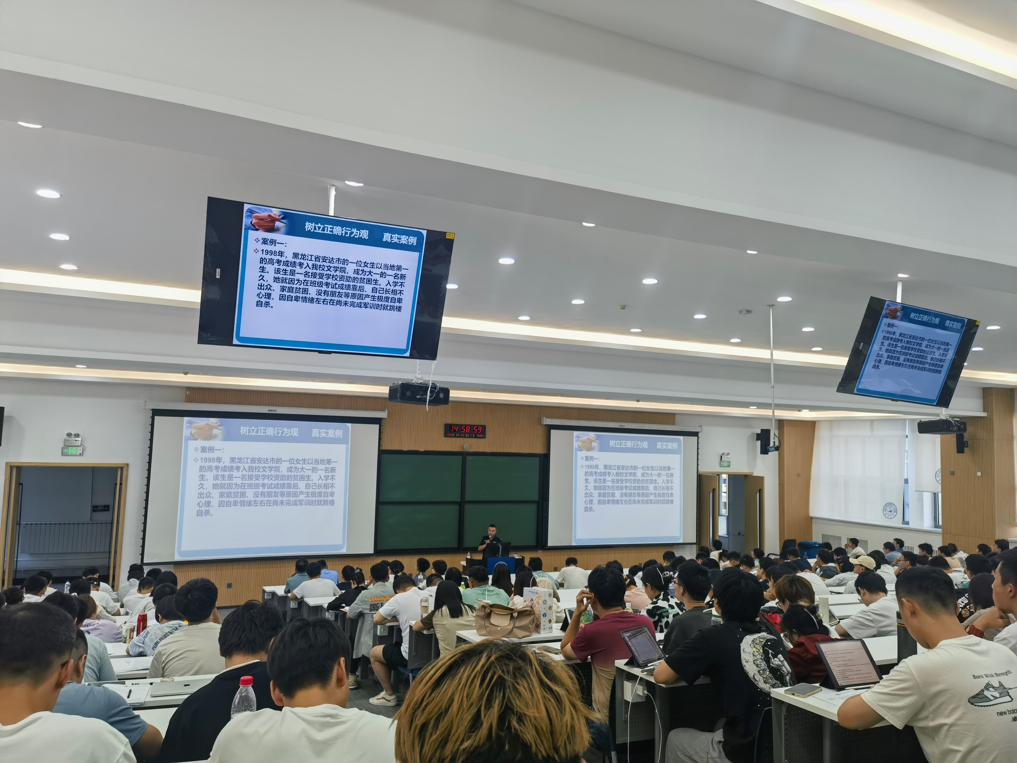 东区保卫处刘海江老师介绍了常见的校园火灾隐患,提醒各位同学注意用电用火安全,从源头遏制火灾发生的可能性,要求同学们明确火灾发生后的紧急处理办法。东区保卫处田刚老师从实例出发,从盗窃、抢劫、诈骗、电信诈骗等方面给同学们拉响警钟,通过列举常见的校园诈骗手段,提醒同学们提高防范意识。增强各位新生的安全意识,加强安全知识储备,树牢底线思维,引导其重视在校期间的学习、生活和人身安全,营造平安和谐的校园安全氛围,共同筑牢校园安全防线。